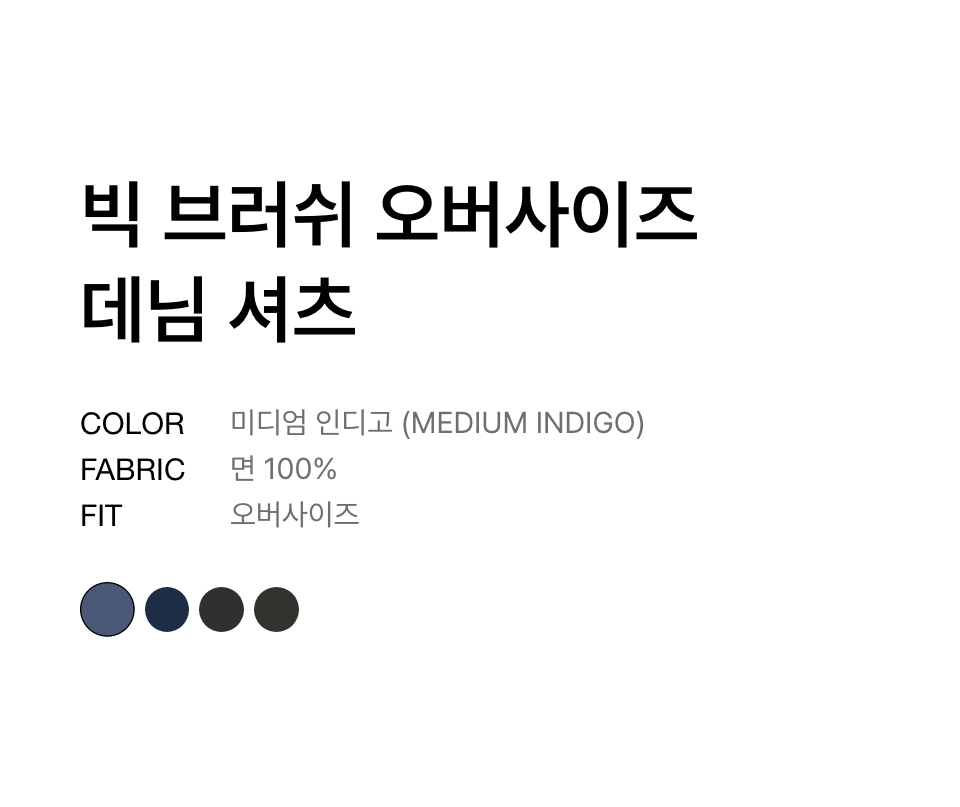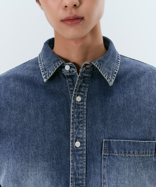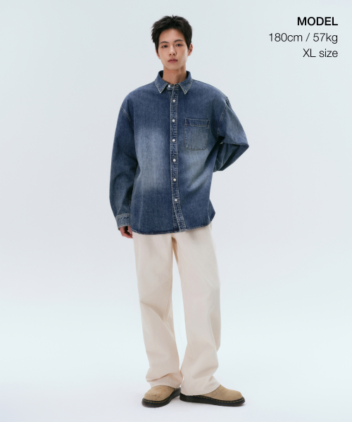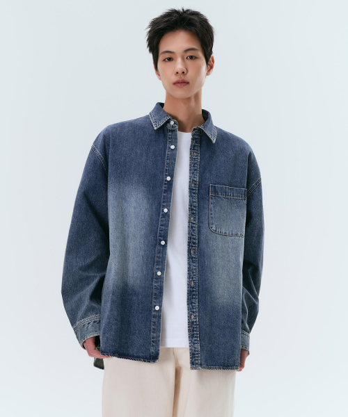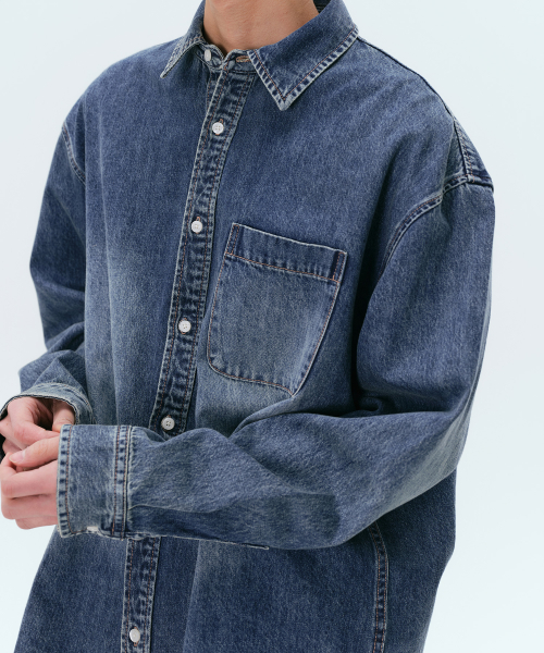 빅 브러쉬 오버사이즈 데님 셔츠 [미디엄 인디고]