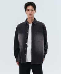 빅 브러쉬 오버사이즈 데님 셔츠 [워시드 블랙]