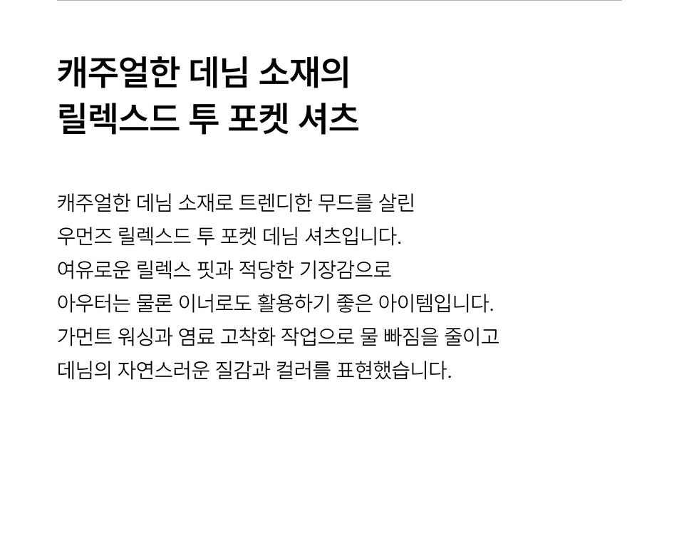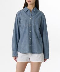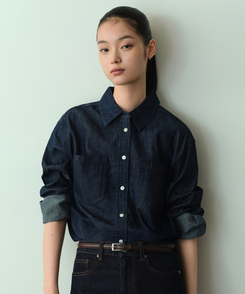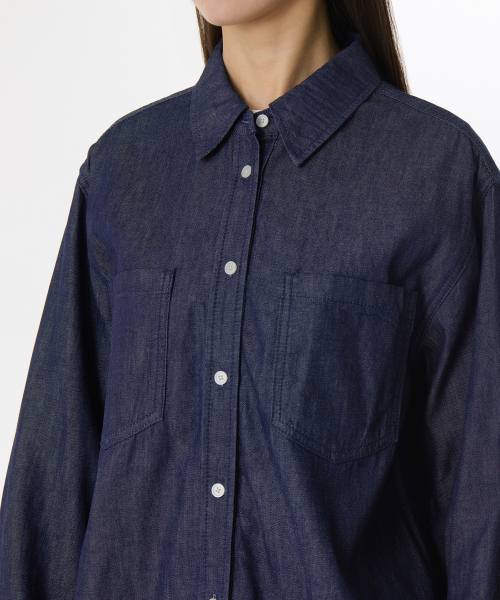 우먼즈 릴렉스드 투 포켓 데님 셔츠 [라이트 인디고]