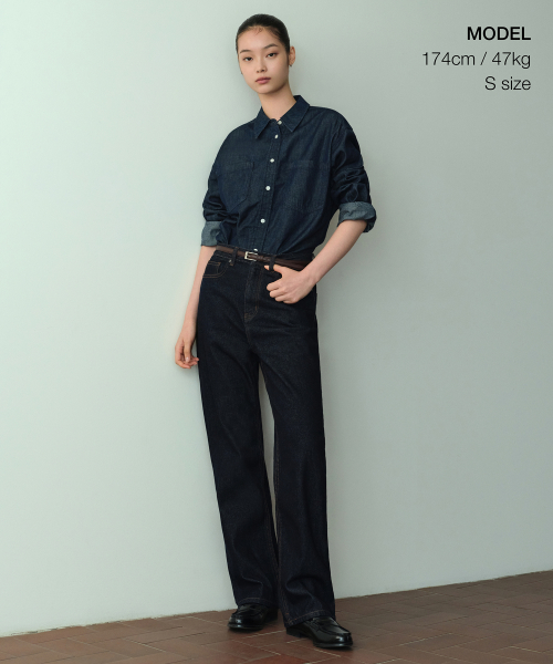 우먼즈 스트레이트 데님 팬츠 [딥 인디고]
