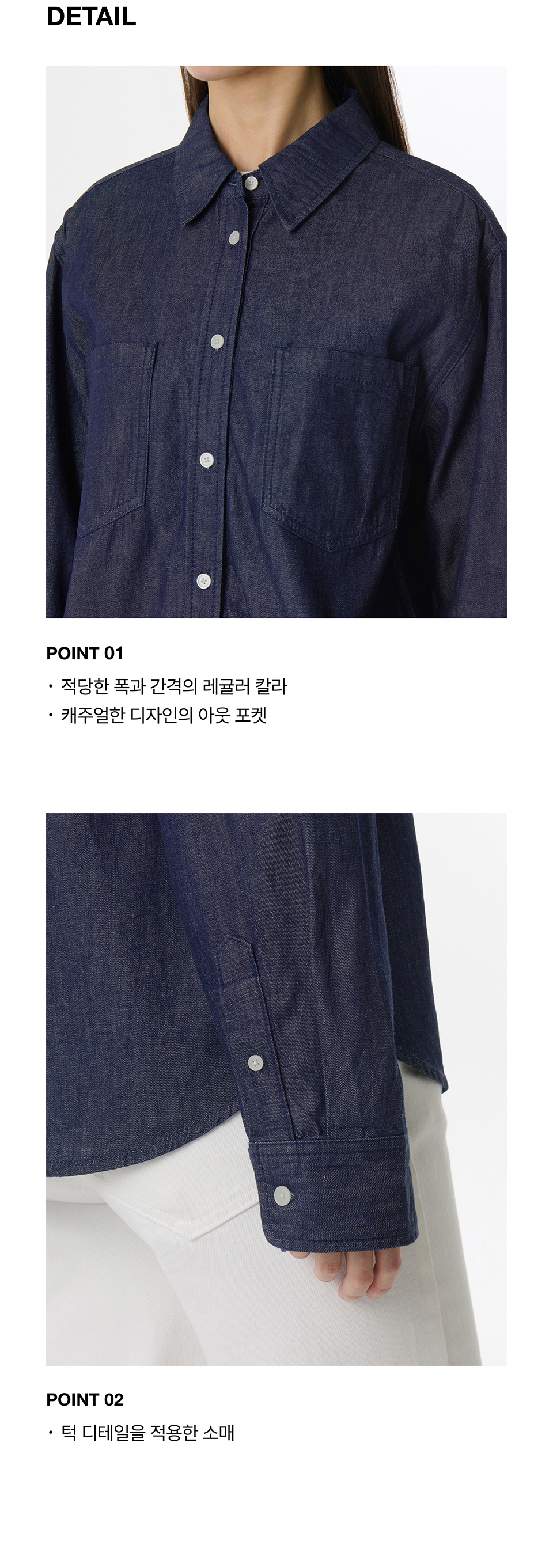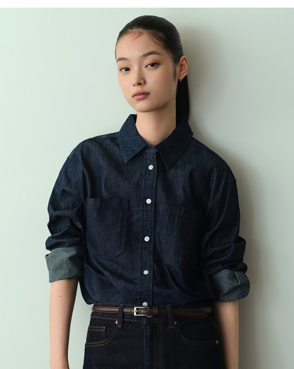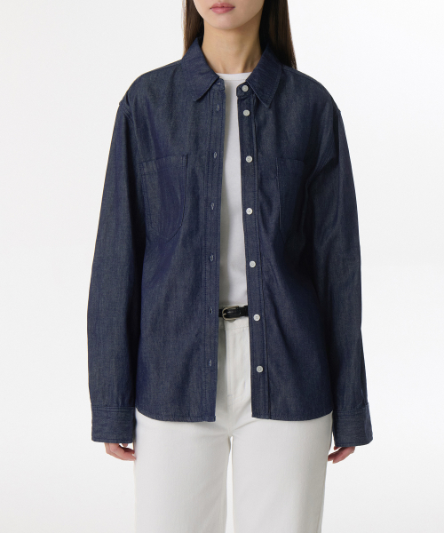 우먼즈 릴렉스드 투 포켓 데님 셔츠 [딥 인디고]