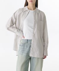 우먼즈 멀티 스트라이프 오버사이즈 옥스포드 셔츠 [라이트 베이지]
