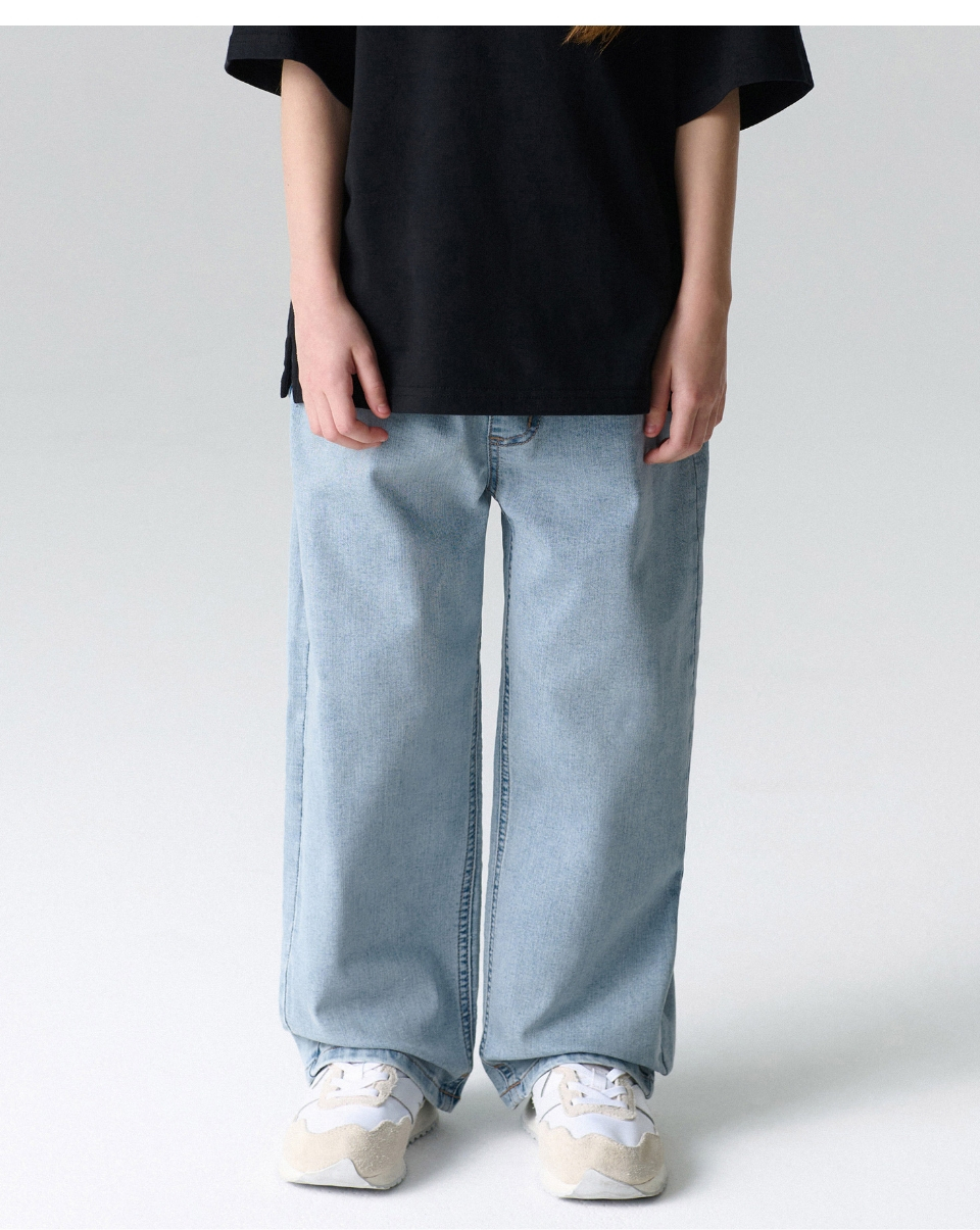 [쿨탠다드] 와이드 밴딩 데님 팬츠 [라이트 인디고]