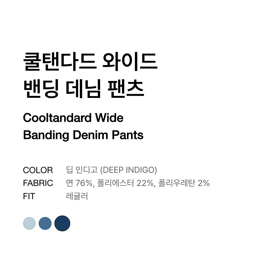 [쿨탠다드] 와이드 밴딩 데님 팬츠 [딥 인디고]