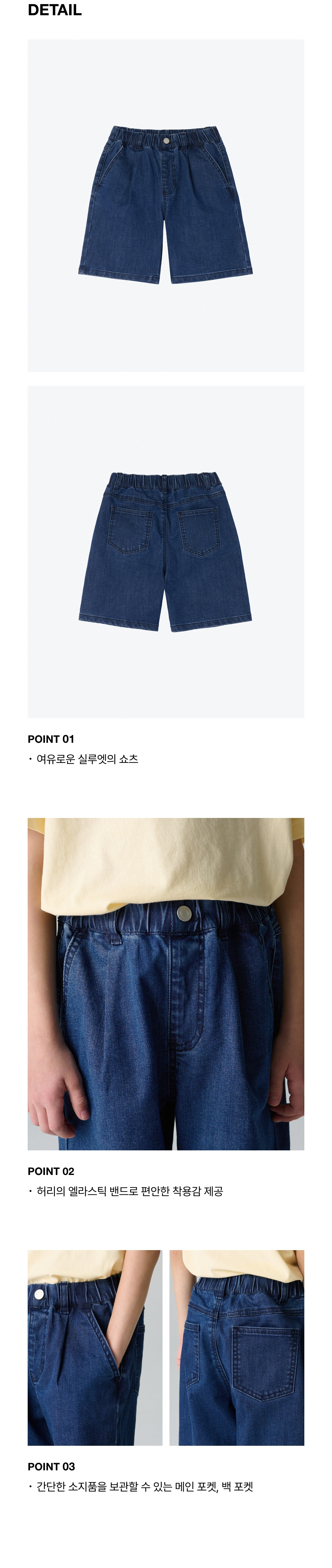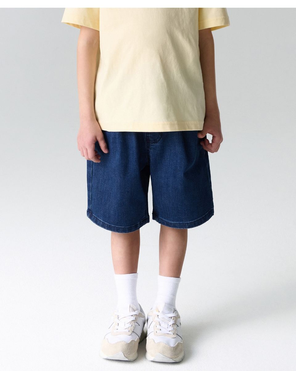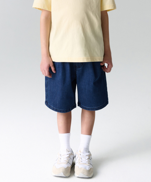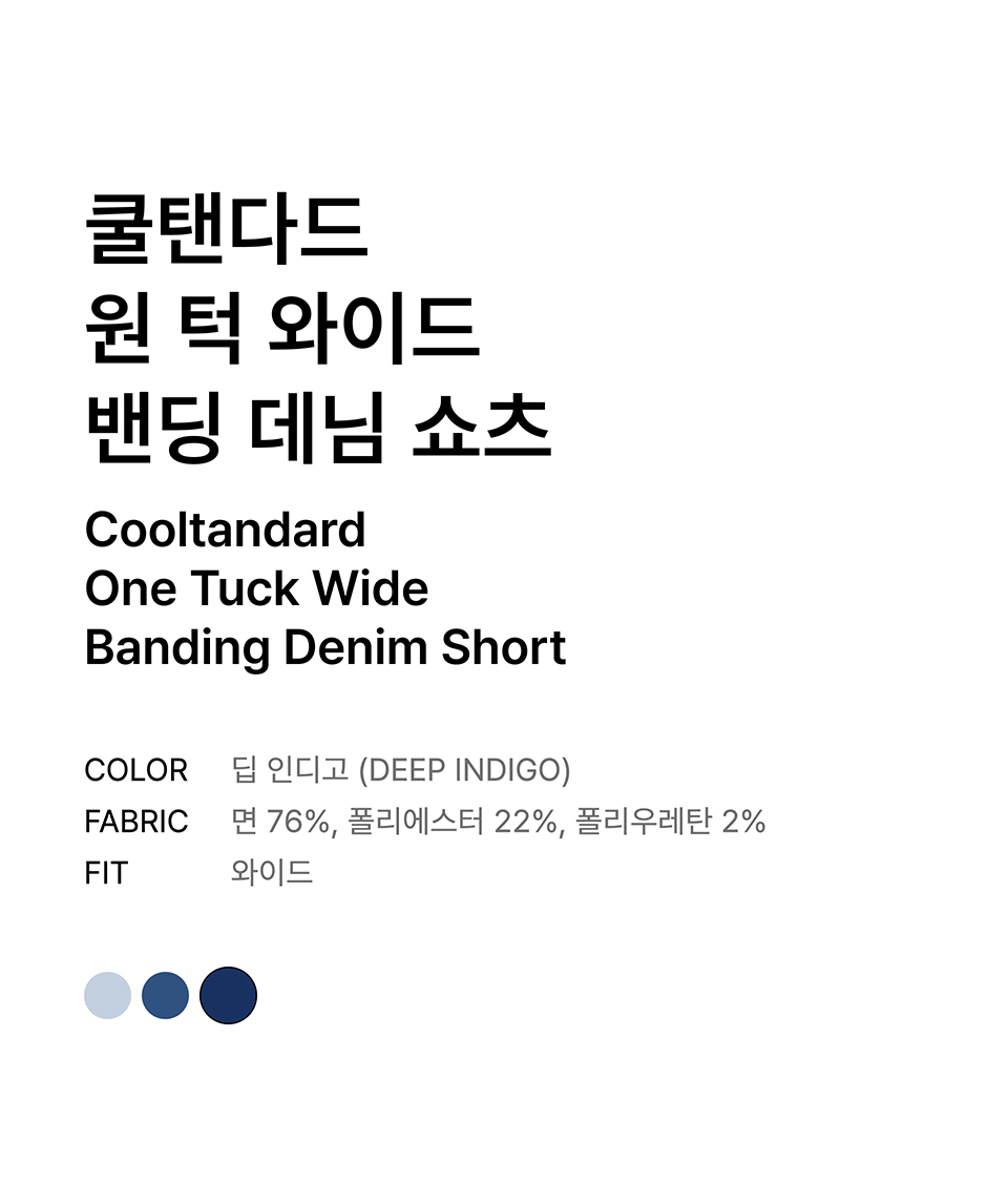 [쿨탠다드] 원 턱 와이드 밴딩 데님 쇼츠 [딥 인디고]