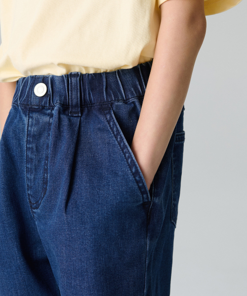 빅 브러쉬 벌룬 밴딩 데님 팬츠 [라이트 인디고]