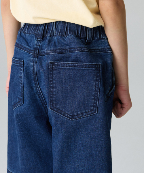 와이드 카펜터 밴딩 데님 팬츠 [미디엄 인디고]