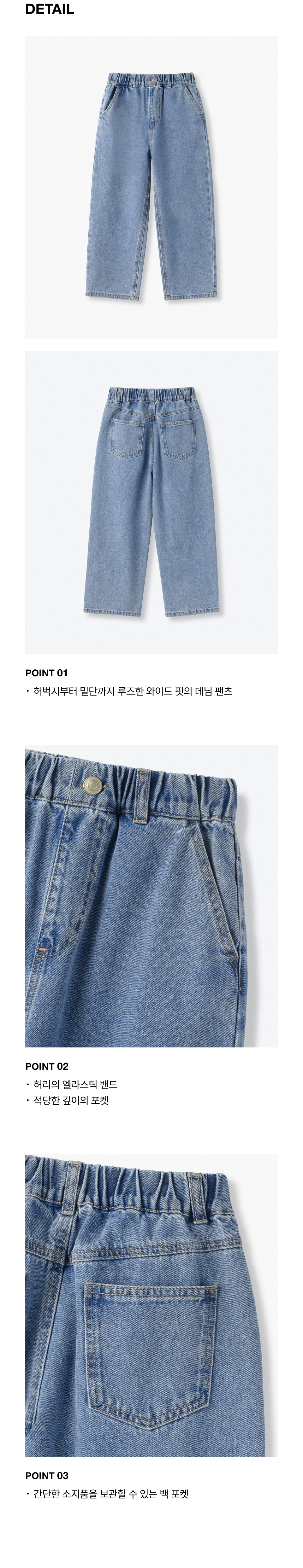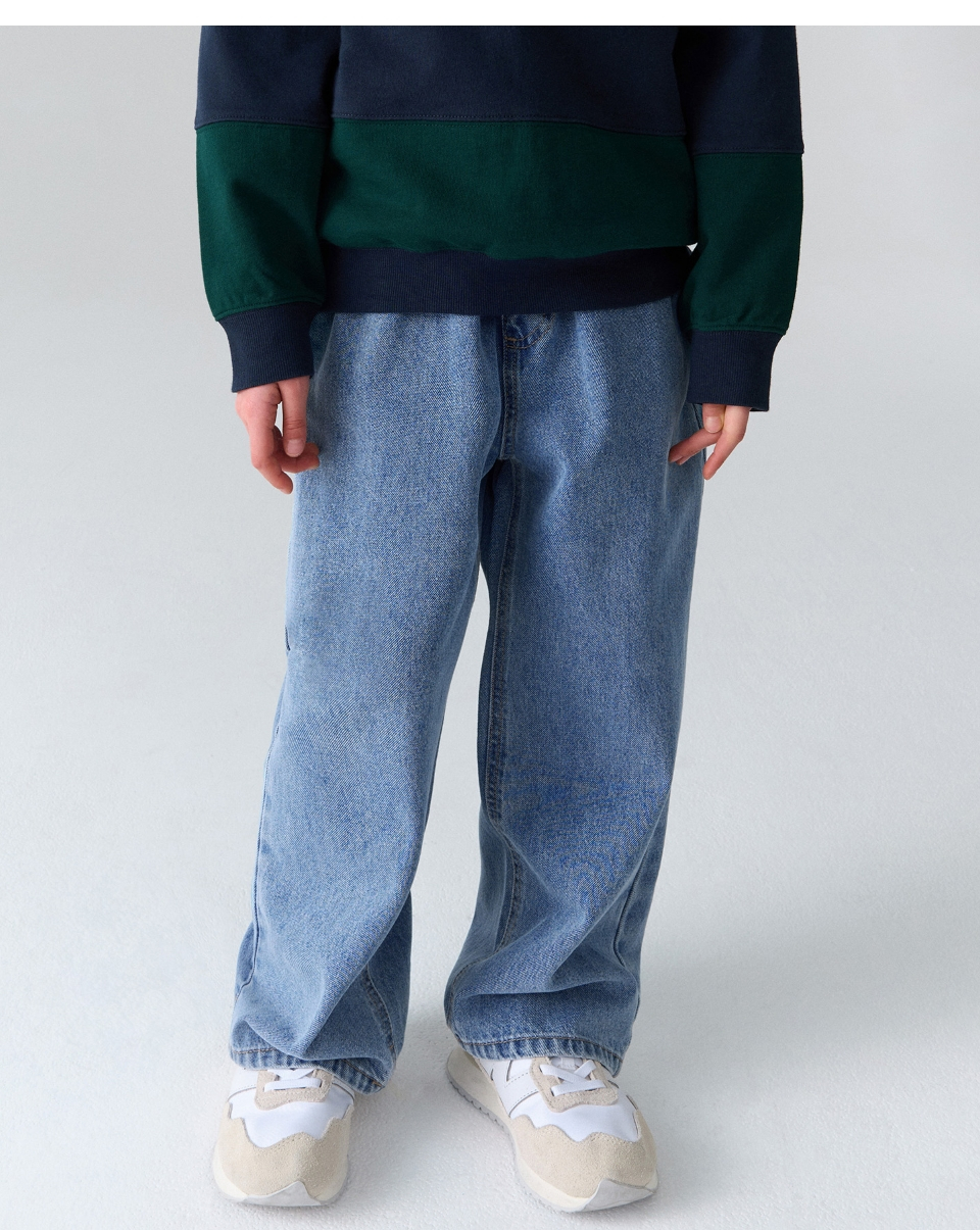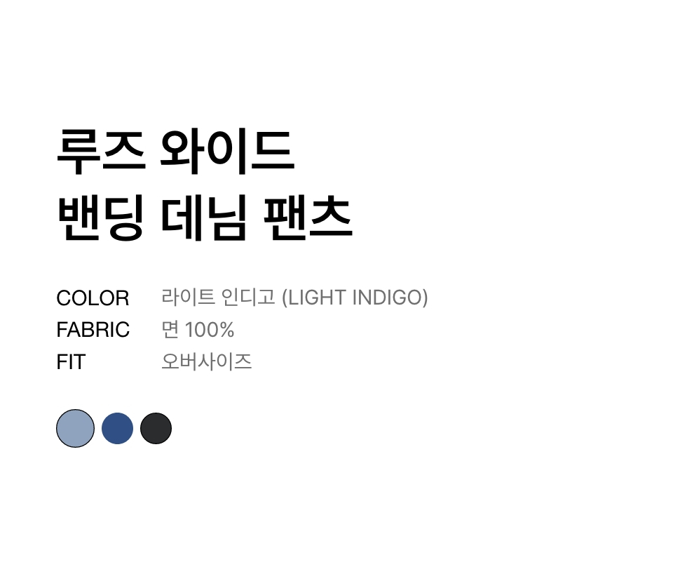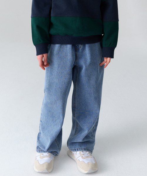 루즈 와이드 밴딩 데님 팬츠 [라이트 인디고]