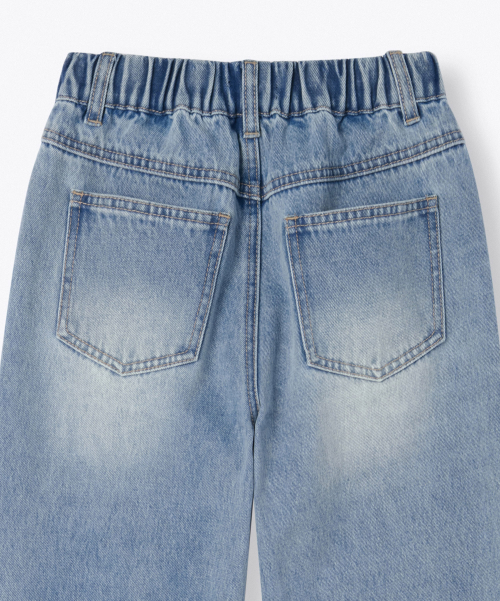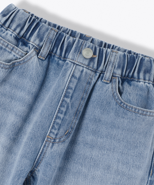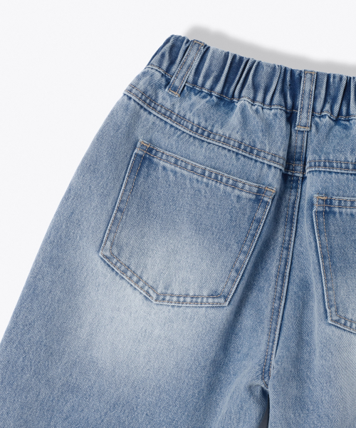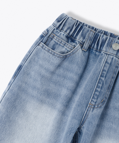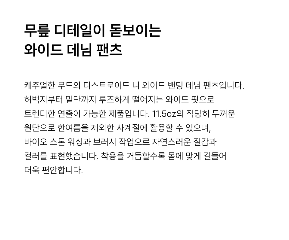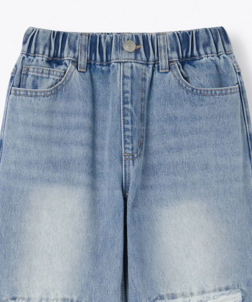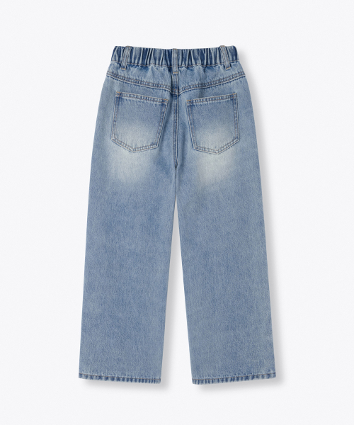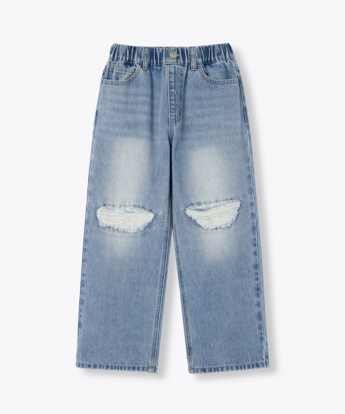 디스트로이드 니 와이드 밴딩 데님 팬츠 [라이트 인디고]