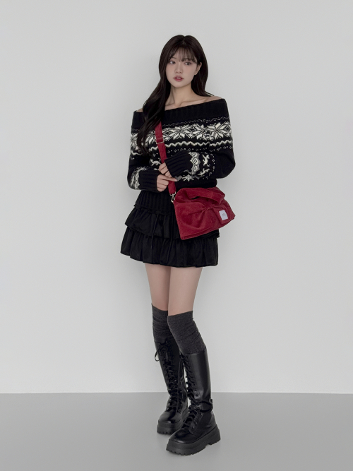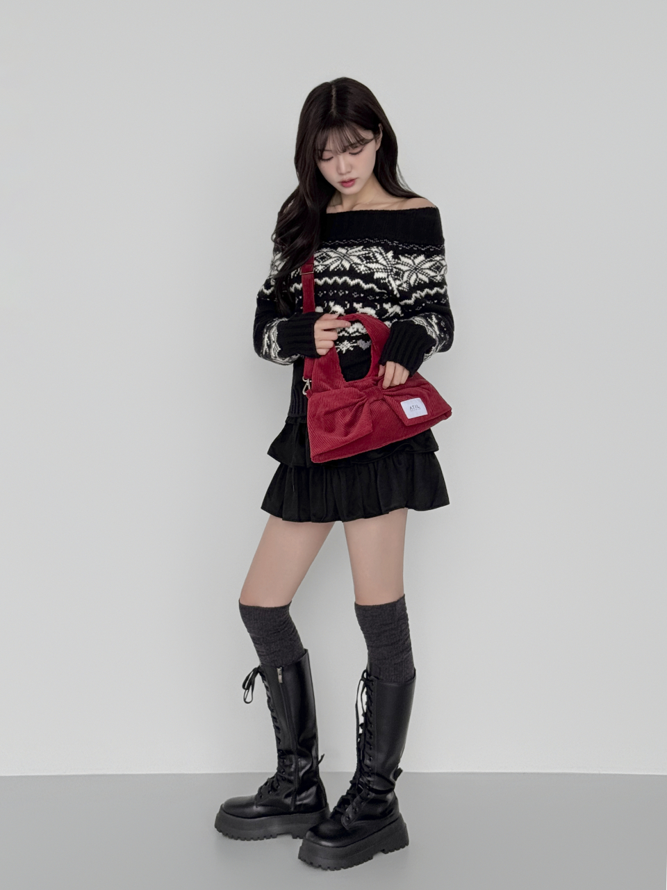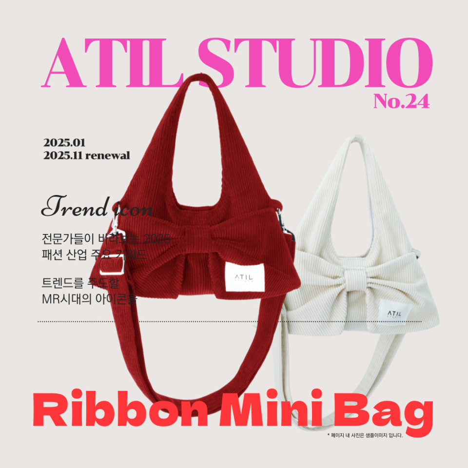 코듀로이 미니 리본 호보 도트 앤 크로스백 _ [레드]