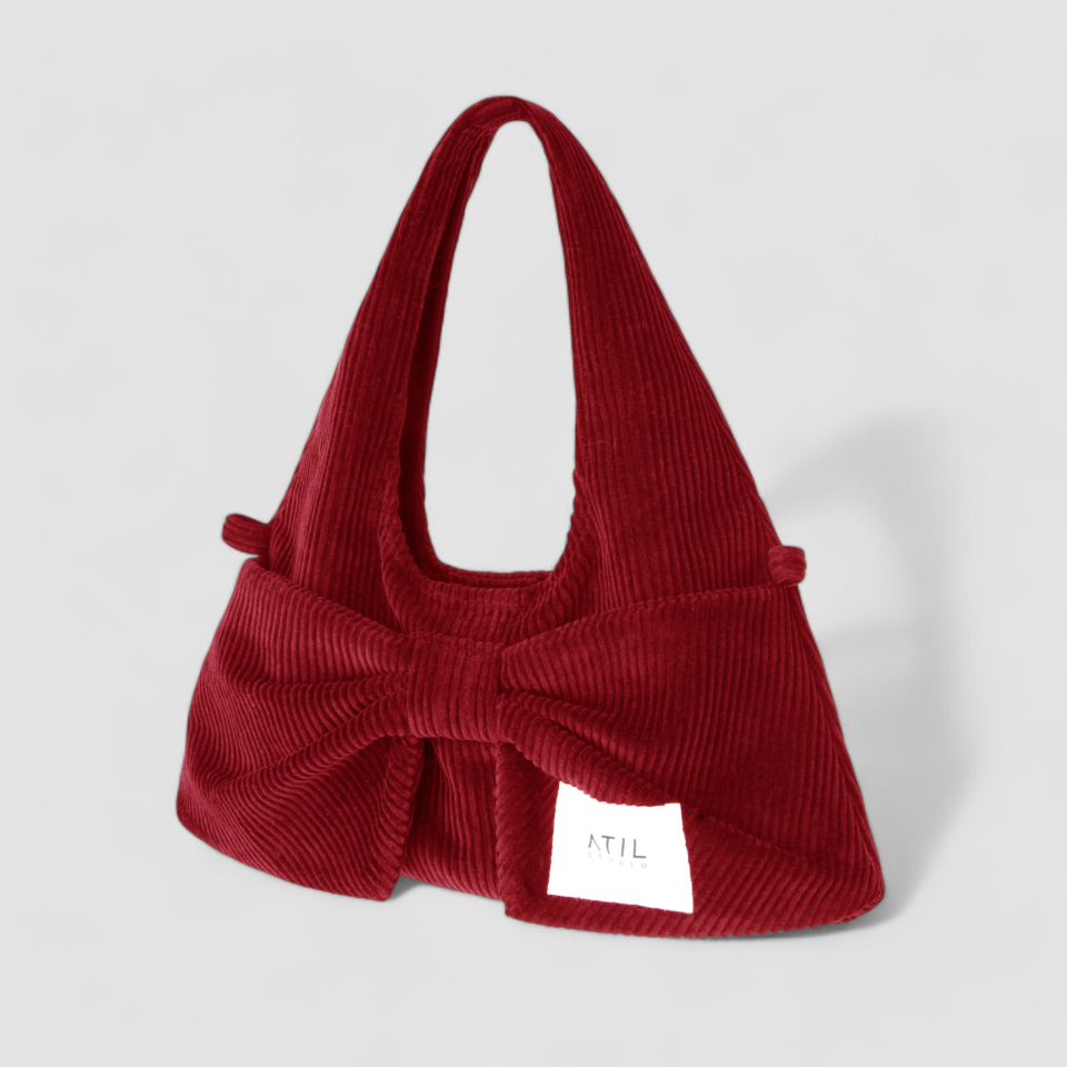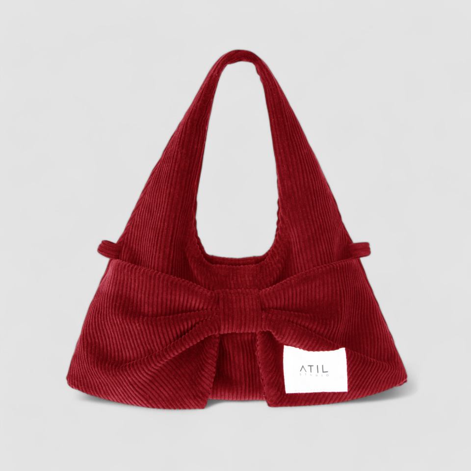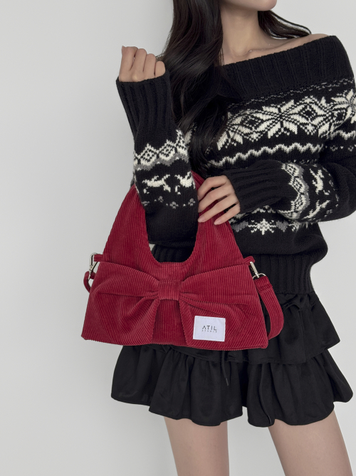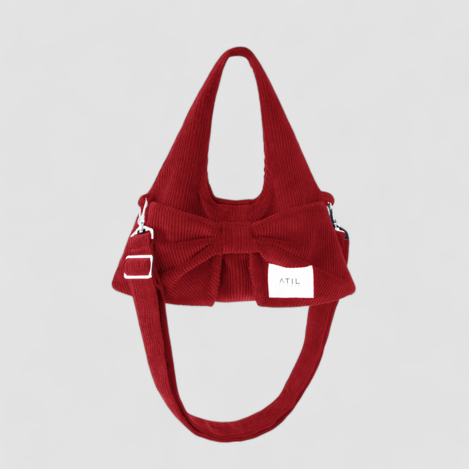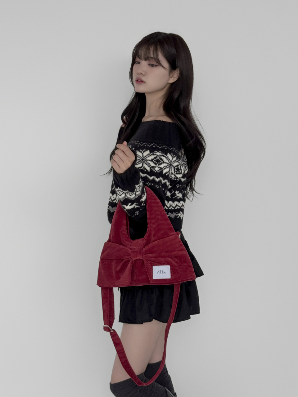 코듀로이 듀이 리본 호보 숄더 앤 크로스백 _ [레드]