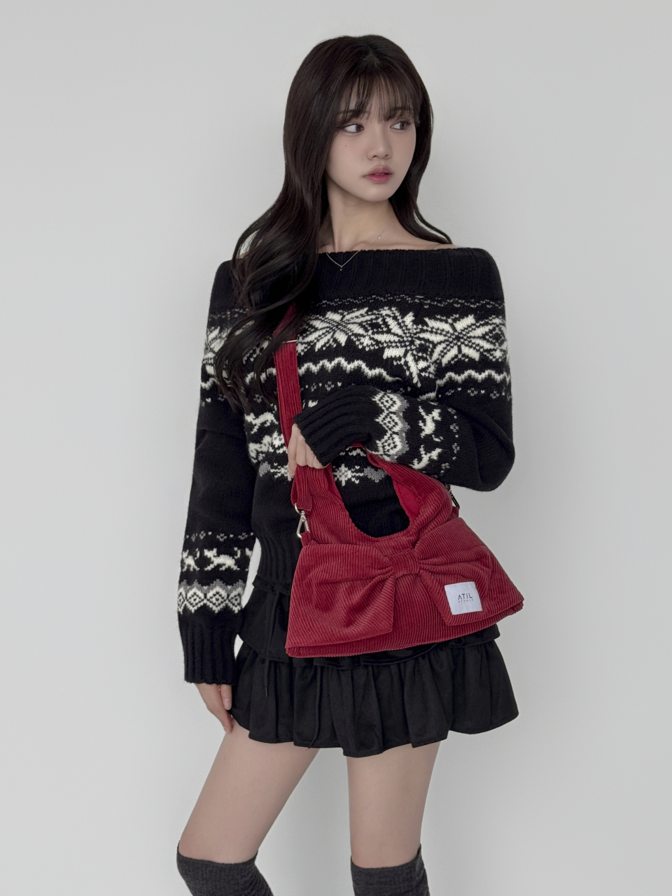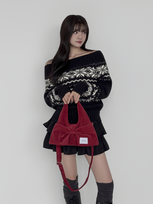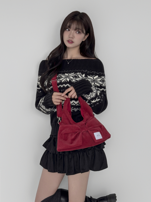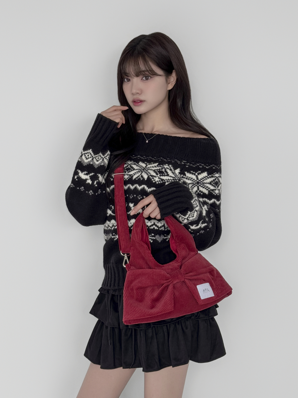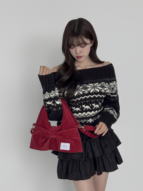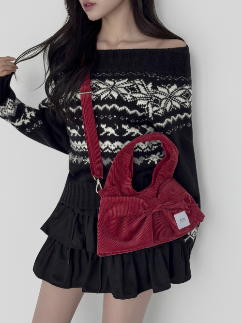 코듀로이 듀이 리본 호보 숄더 앤 크로스백 _ [레드]