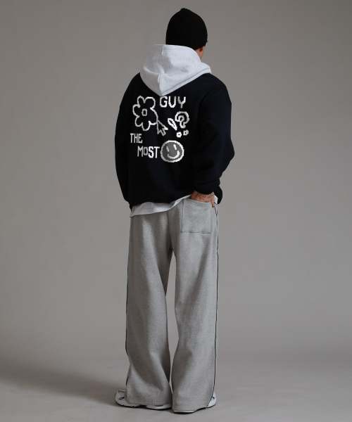 젠더리스 와이드 밴딩 슬랙스 [다크 그레이]