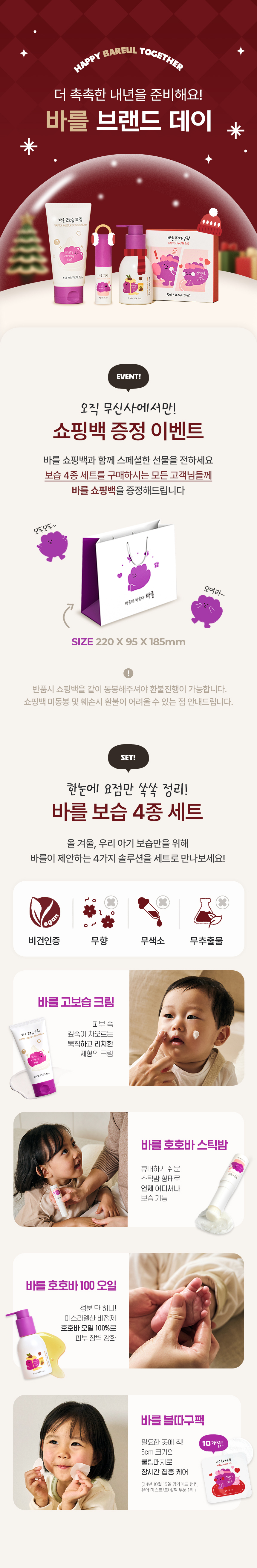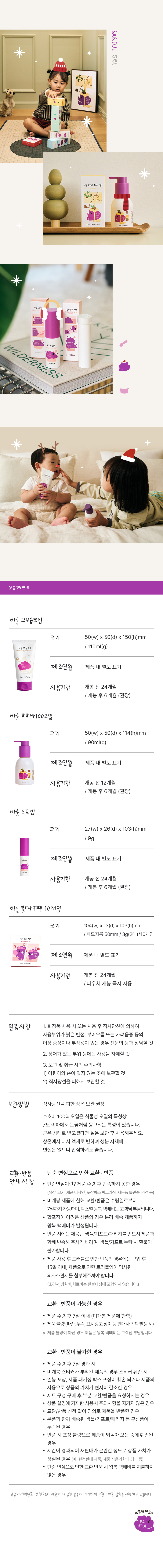 바를 보습 4종 세트(고보습크림,호호바오일,스틱밤,볼따구팩)+쇼핑백 증정