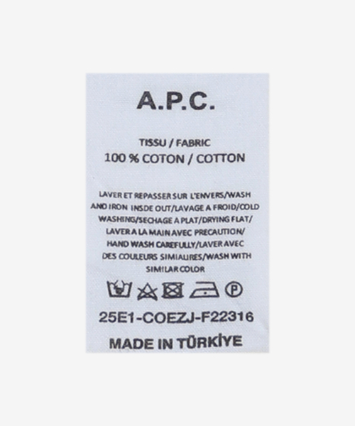 A. P. C.(아페쎄)는 ‘생산과 창작의 아뜰리에 (Atelier de Production et de Creation)’ 라는 뜻이 담긴 프랑스 감성 브랜드입니다. 1987년 디자이너 장뚜이뚜(Jean Touitou)에 의해 탄생한 클래식한 생지 데님을 시작으로, 현재는 남성, 여성을 위한 의류컬렉션부터 액세서리까지 브랜드 철학을 반영한 예술적 감성의 캐주얼 스타일을 선보이고 있습니다.