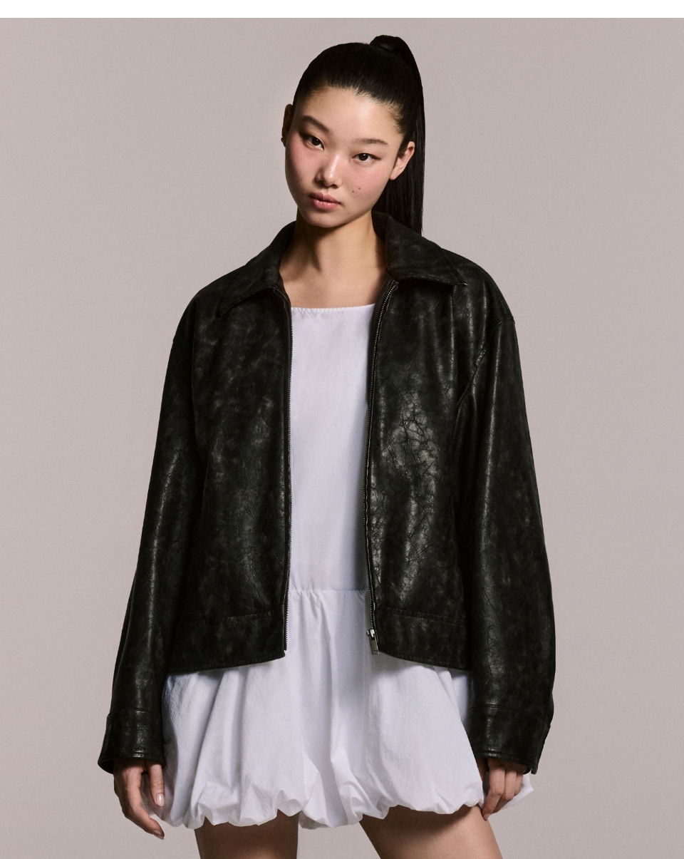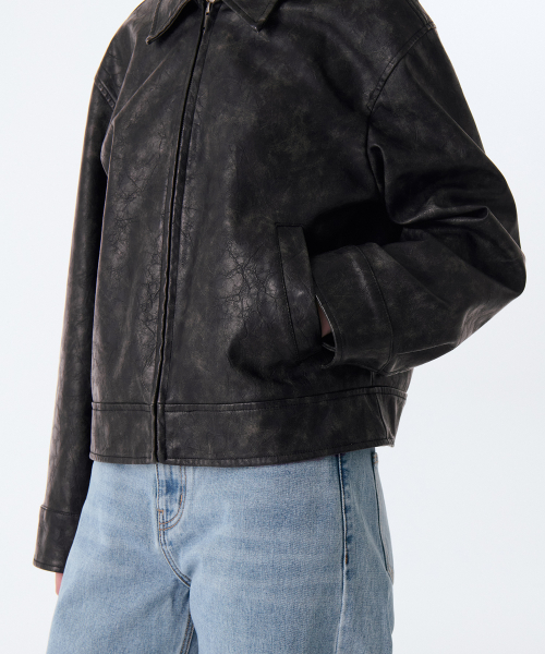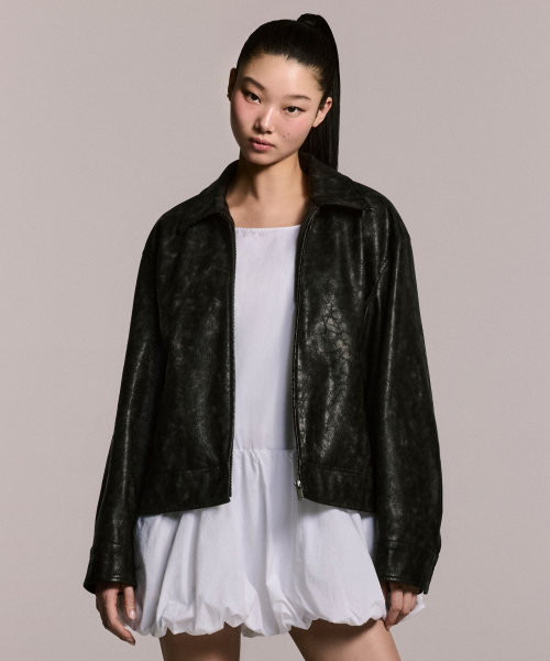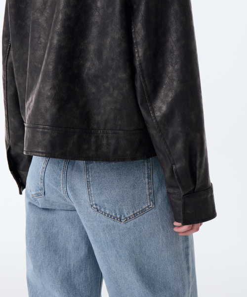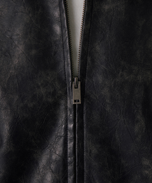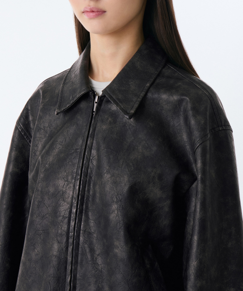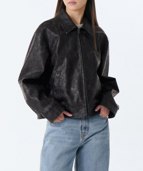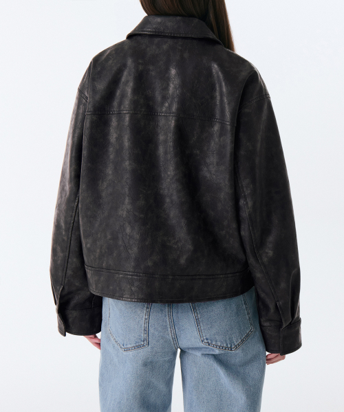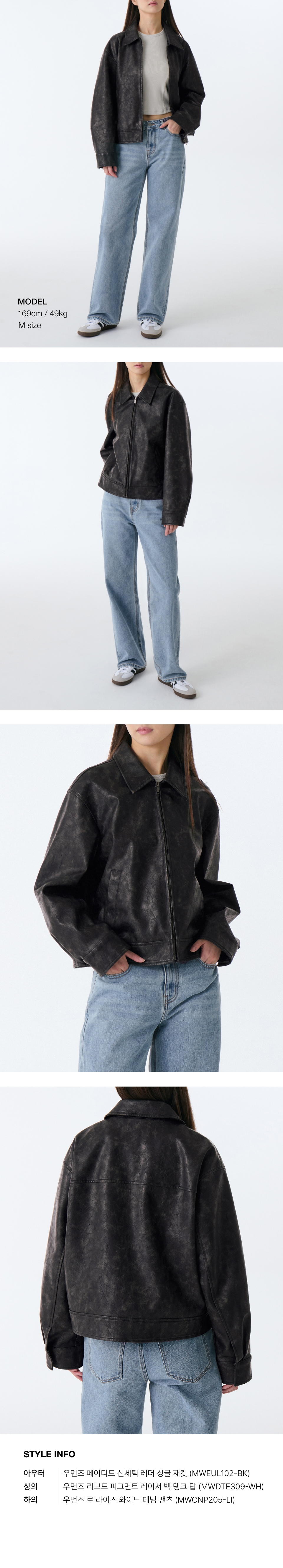 우먼즈 페이디드 신세틱 레더 싱글 재킷 [블랙]