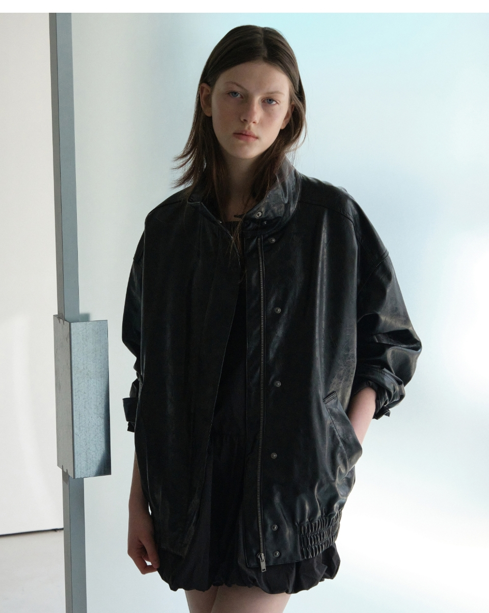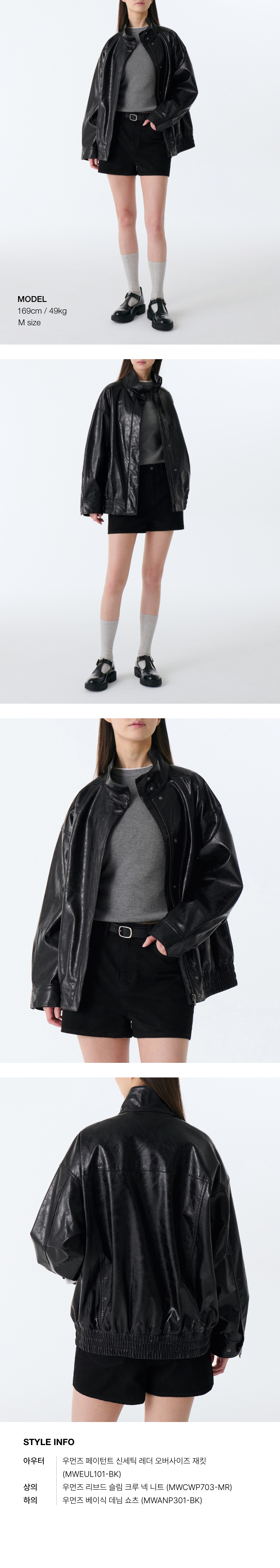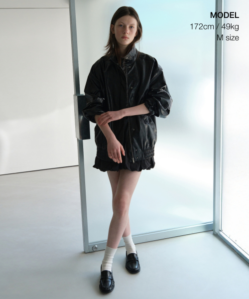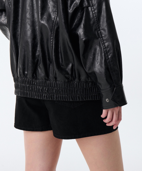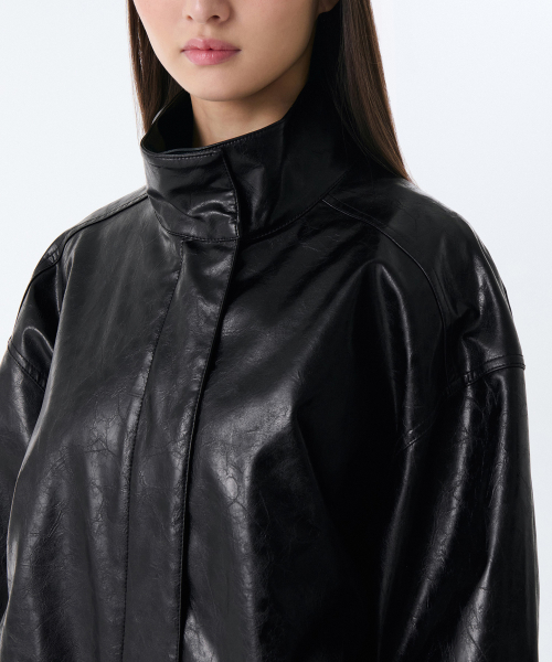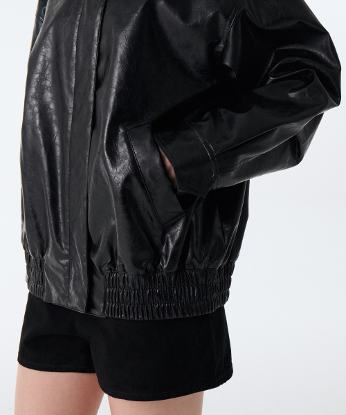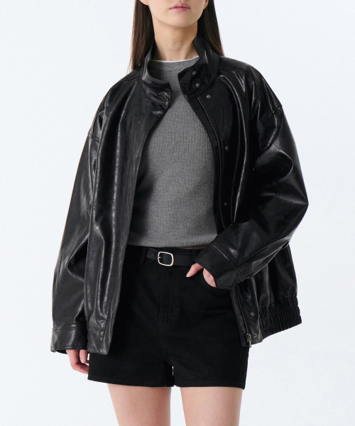 우먼즈 페이턴트 신세틱 레더 오버사이즈 재킷 [블랙]