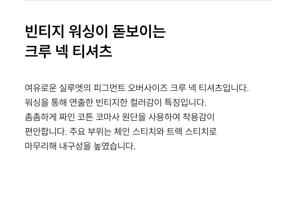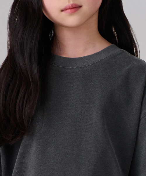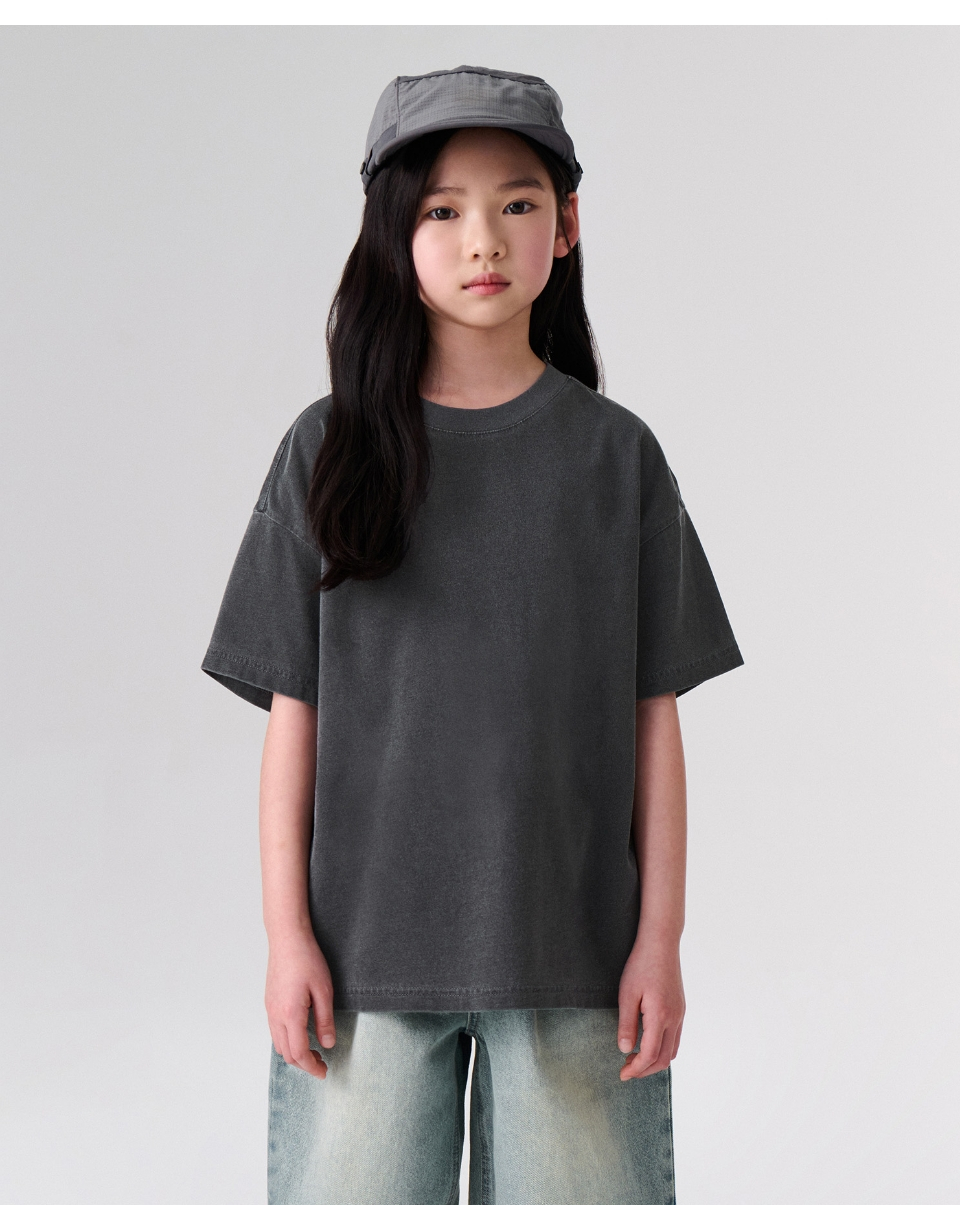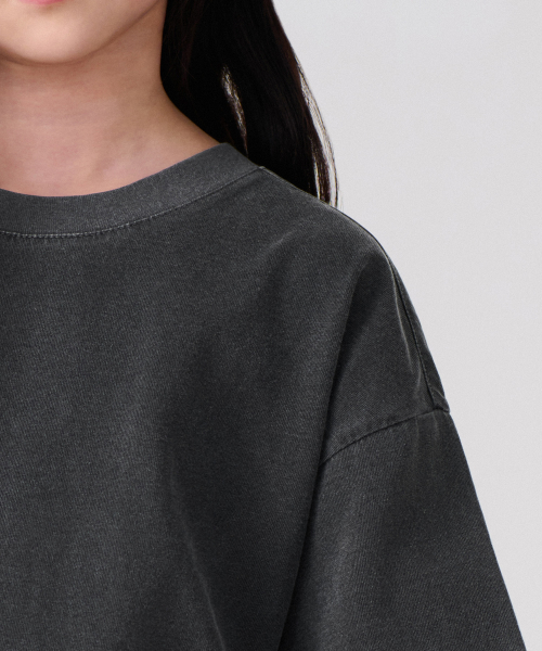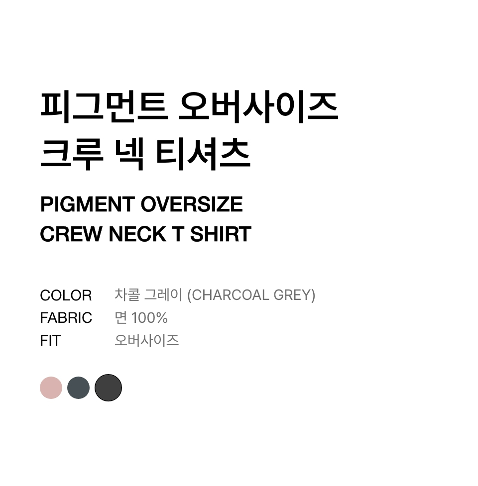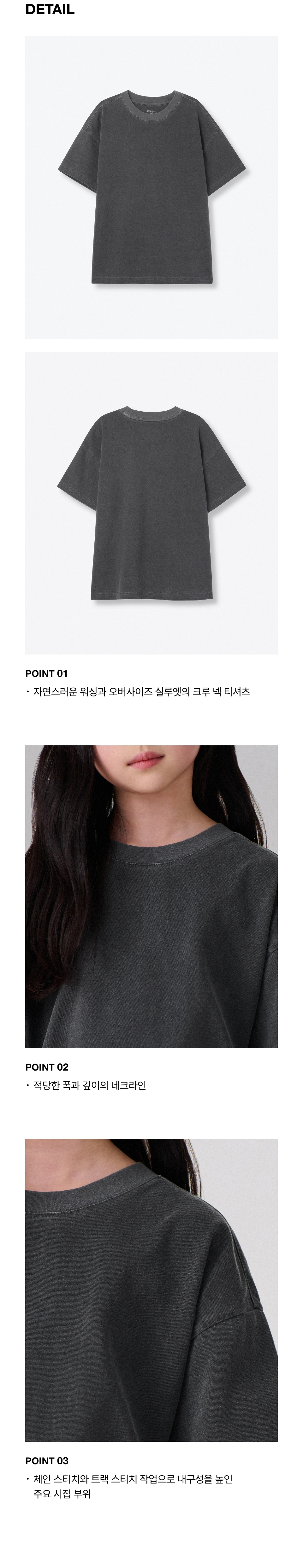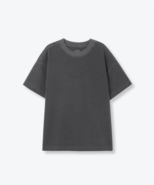 피그먼트 오버사이즈 크루 넥 티셔츠 [차콜 그레이]