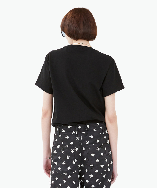 길지 않은 기장감의 스탠다드핏 반팔 티셔츠입니다.