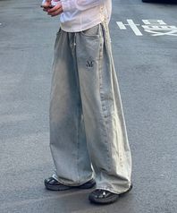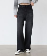 우먼즈 세미 와이드 워싱 데님팬츠[블랙]