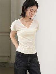 - 레이어드 디테일의 레귤러 핏 티셔츠