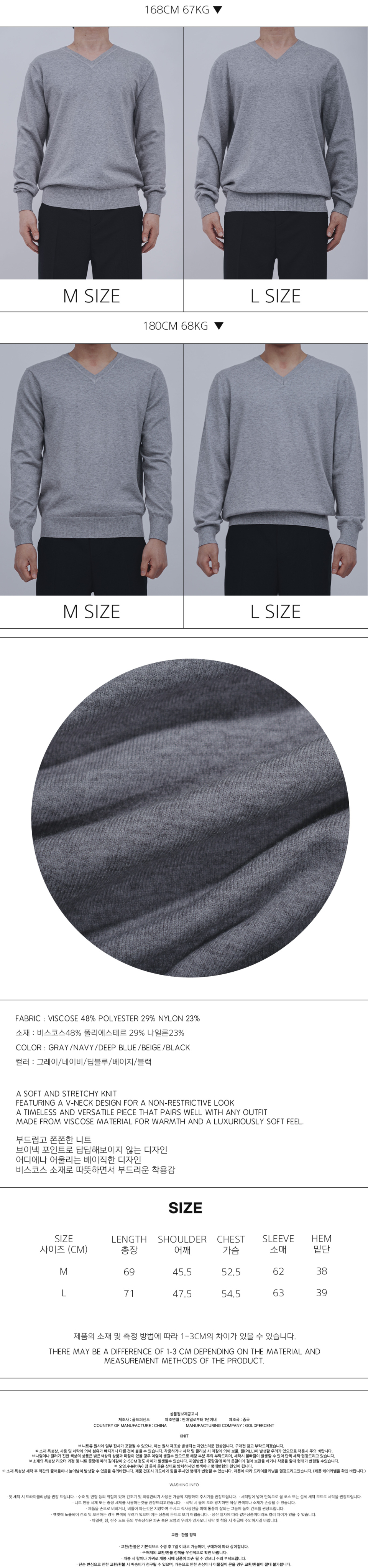 소프트 코지 베이직 브이넥 니트(5 COLOR, MEN)