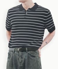 브리즈 스트라이프 카라 반팔 쿨 니트(3COLOR, M)