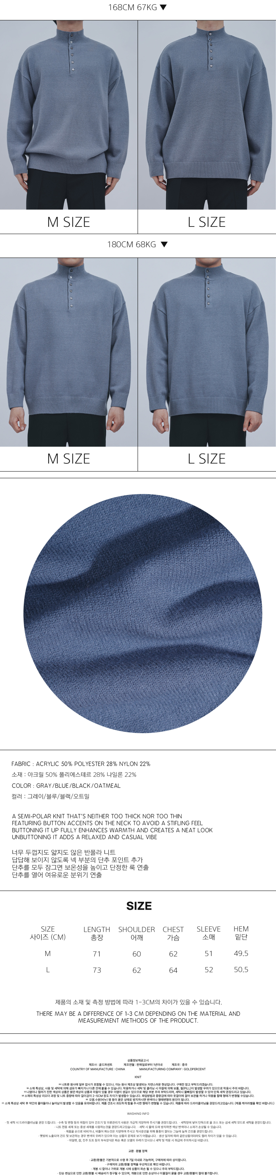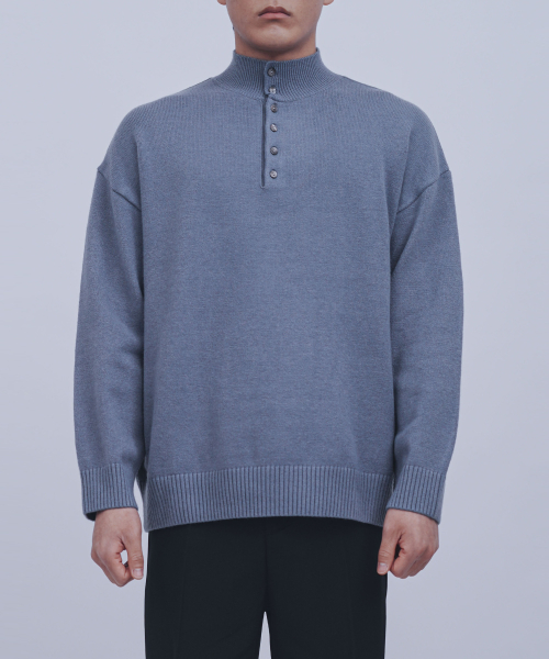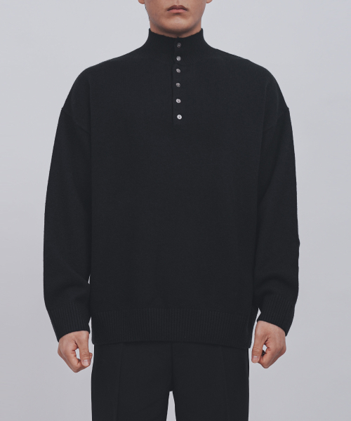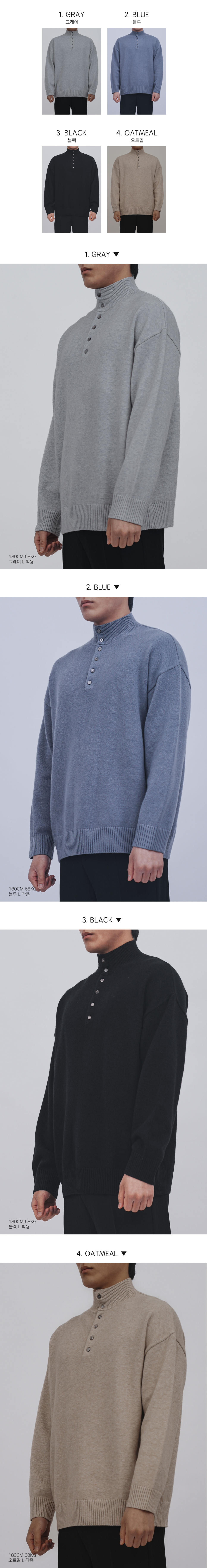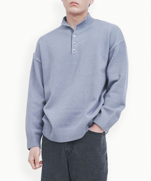 이지 코디 버튼 포인트 하프넥 반폴라 니트(4COLOR, MEN)