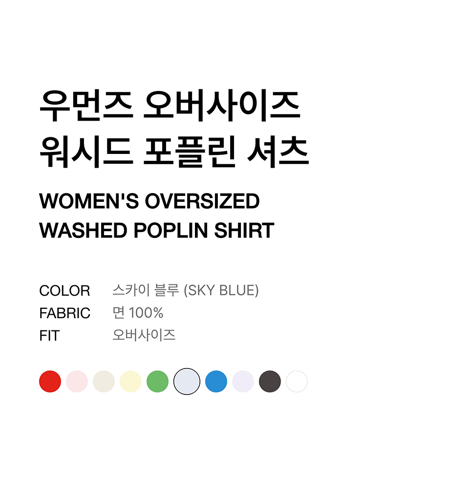 우먼즈 오버사이즈 워시드 포플린 셔츠 [스카이 블루]