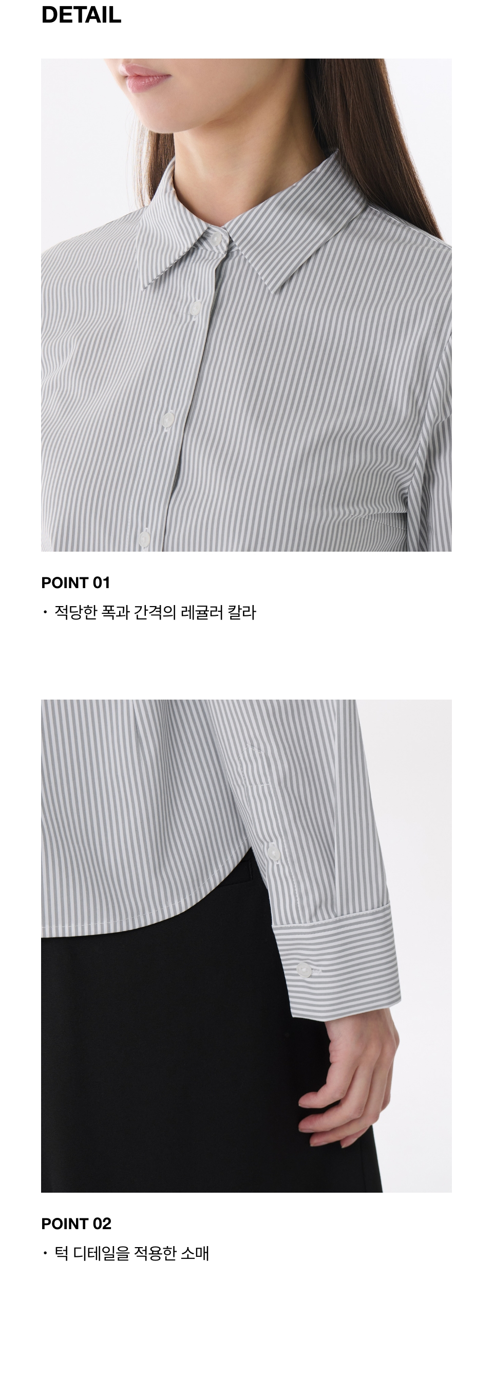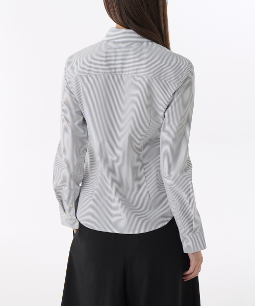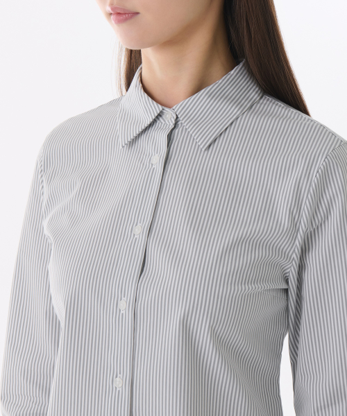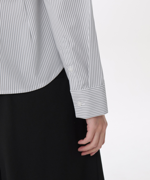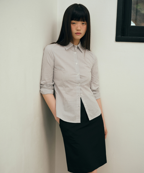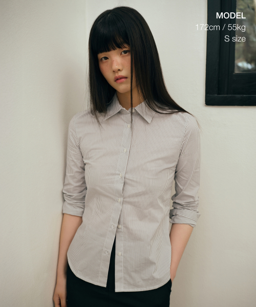 우먼즈 스트라이프 슬림 핏 셔츠 [그레이]