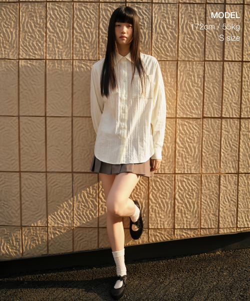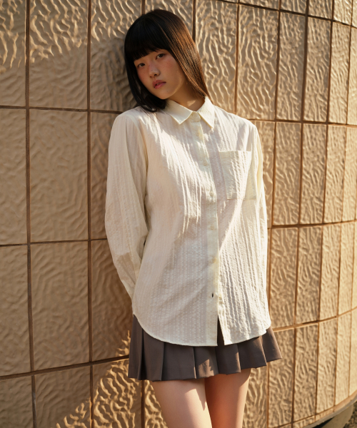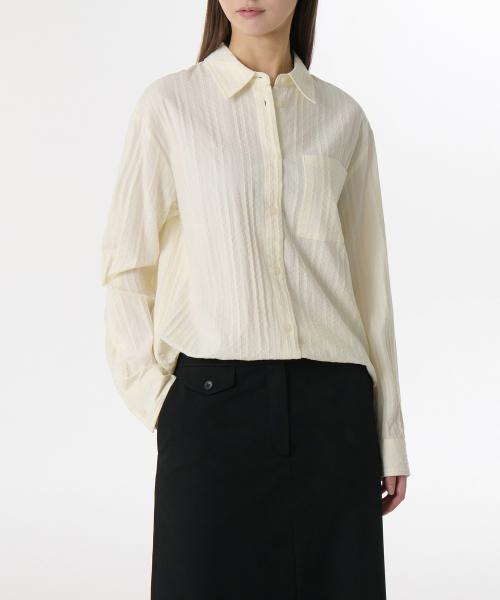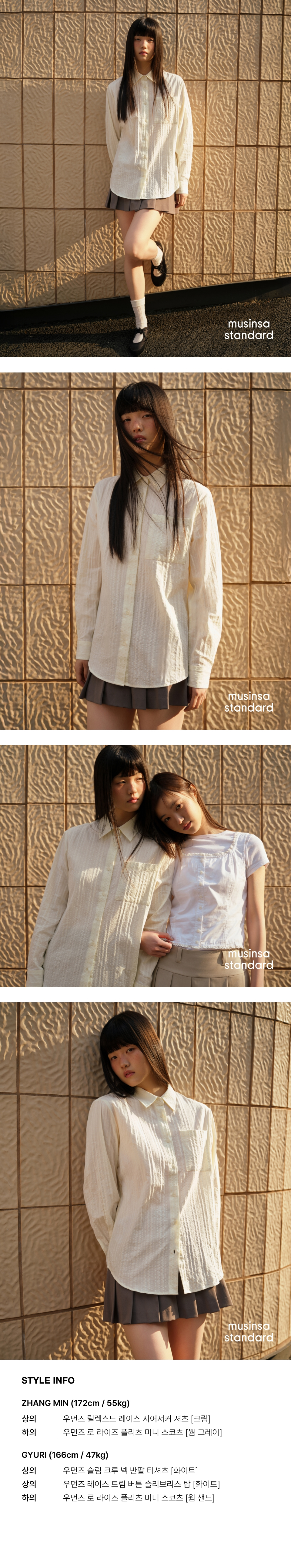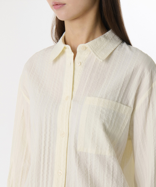 우먼즈 릴렉스드 레이스 시어서커 셔츠 [크림]