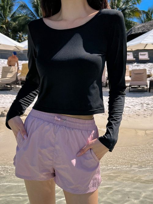우먼 에센셜 크롭 집업 래쉬가드 블랙 (B6SWWCZ001BLK)