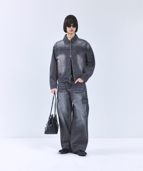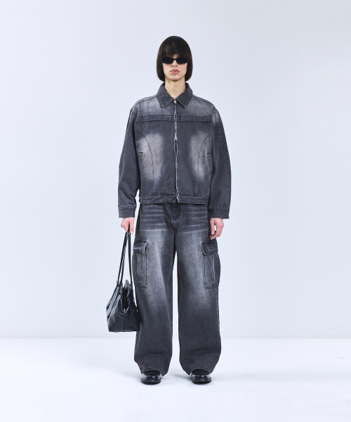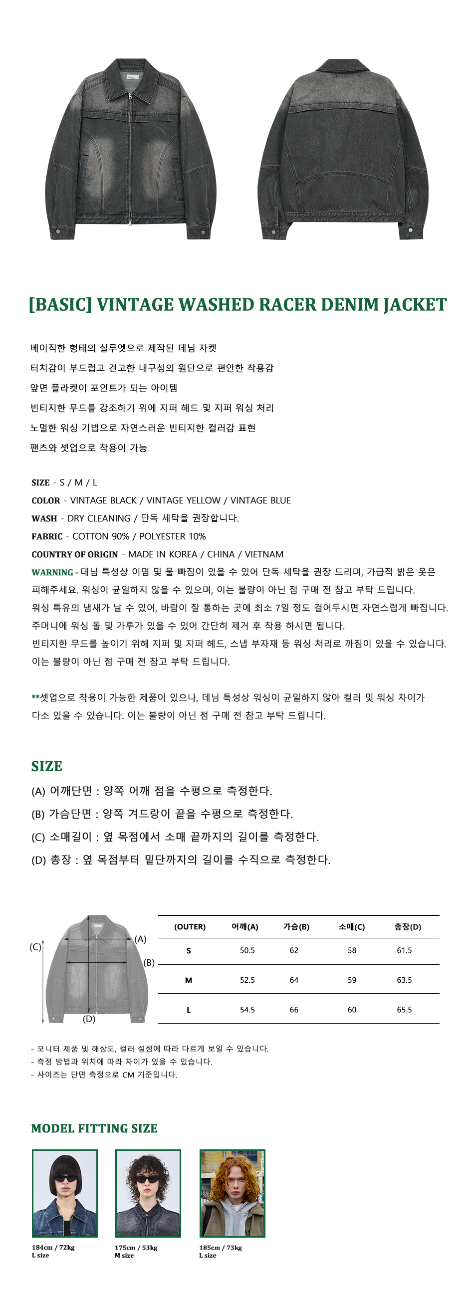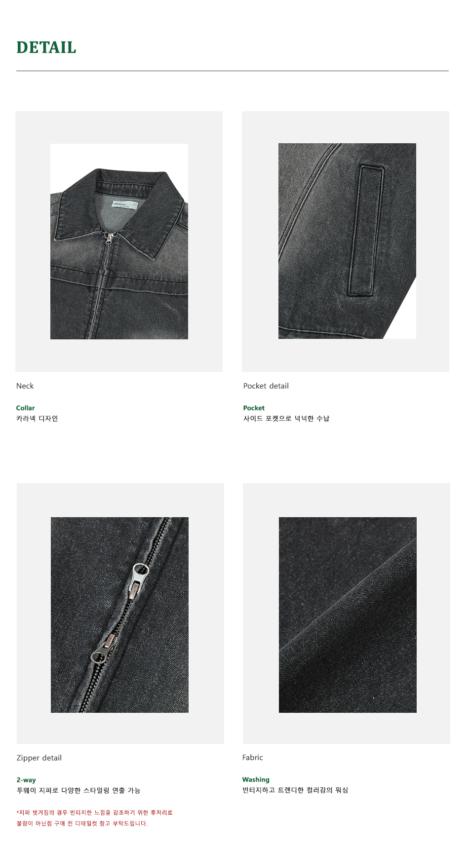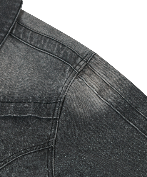 87-STAN117 [베이직] 빈티지 워시드 레이서 데님 자켓 빈티지 블랙