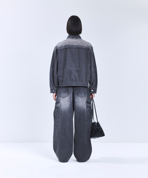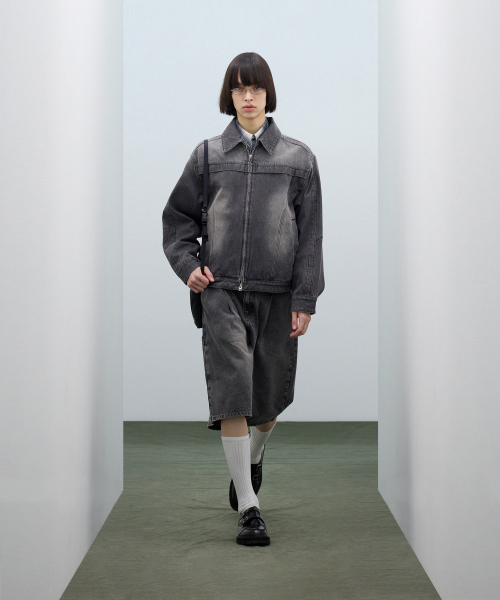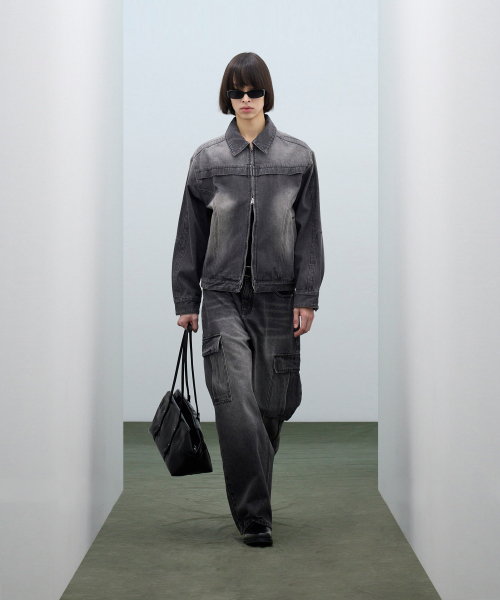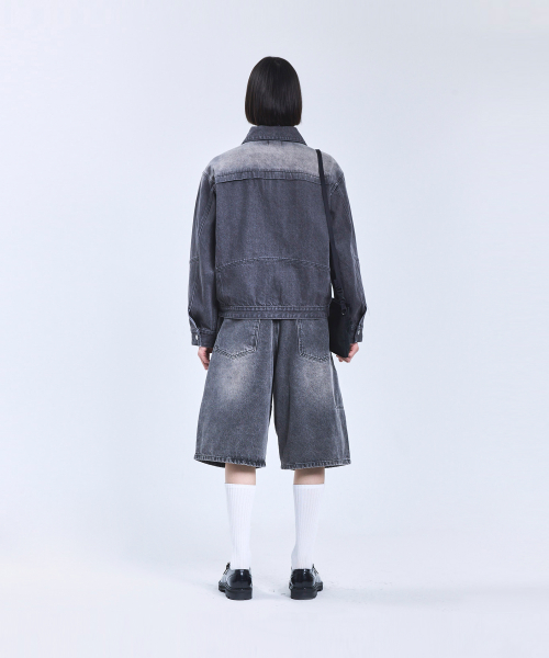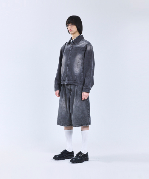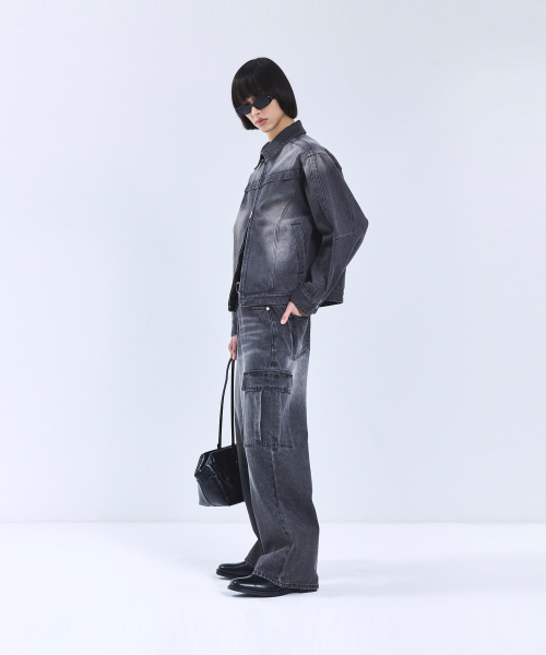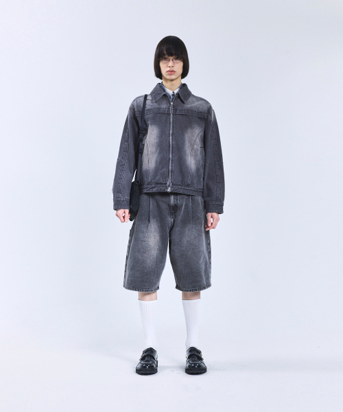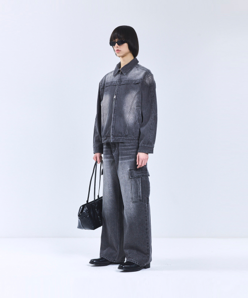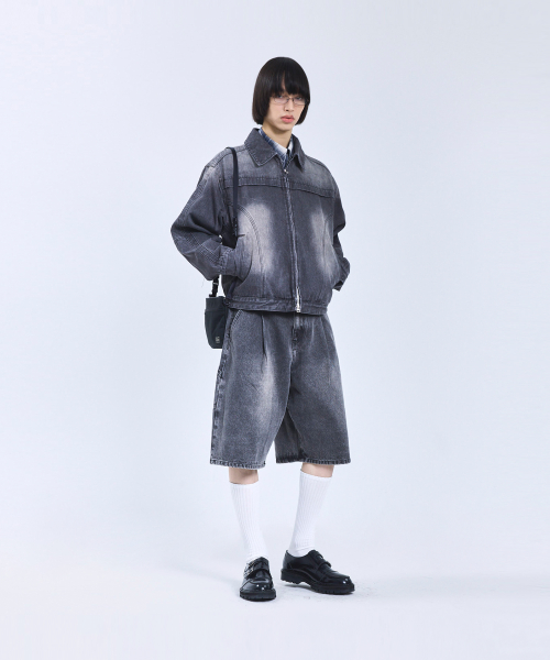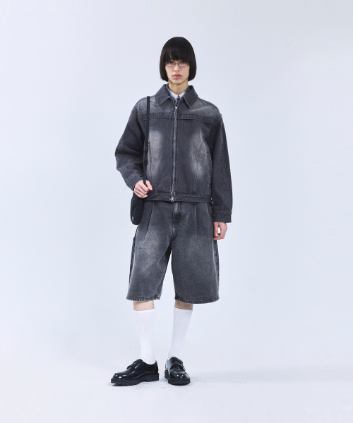 87-STAN117 [베이직] 빈티지 워시드 레이서 데님 자켓 빈티지 블랙