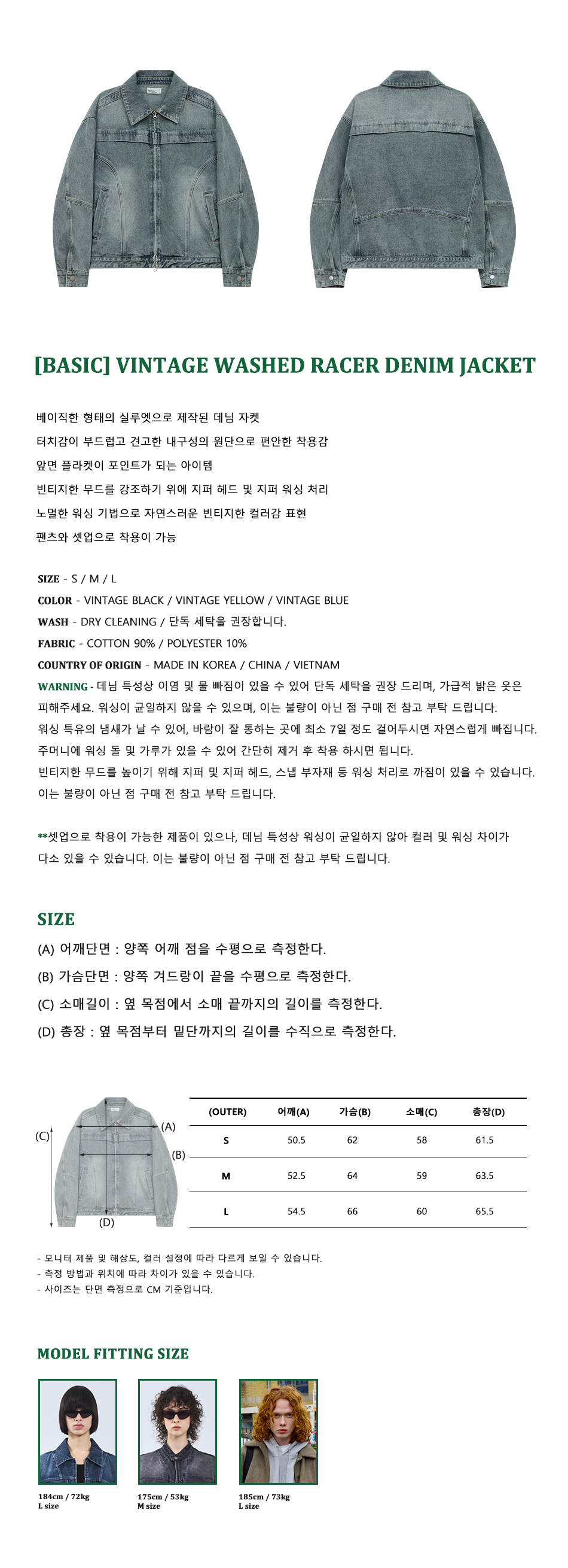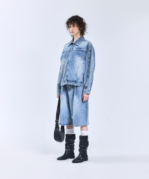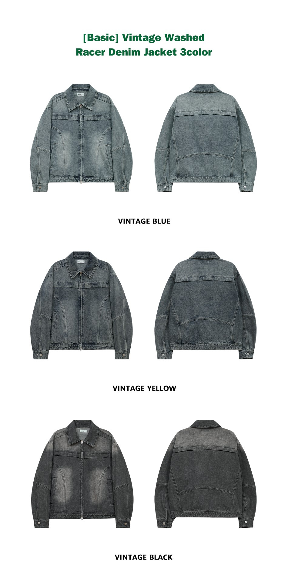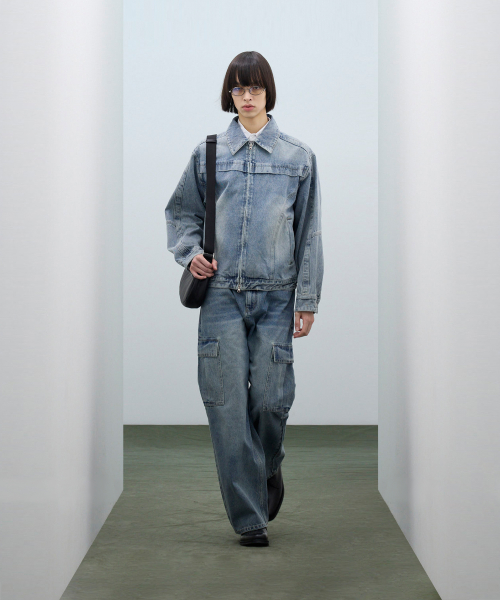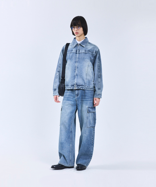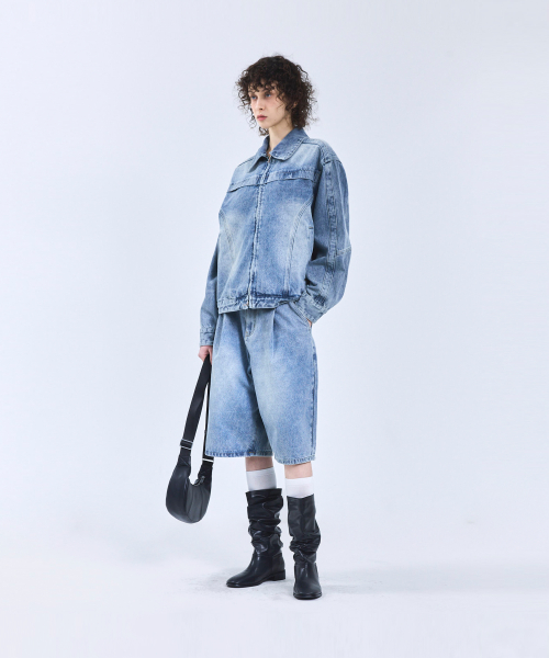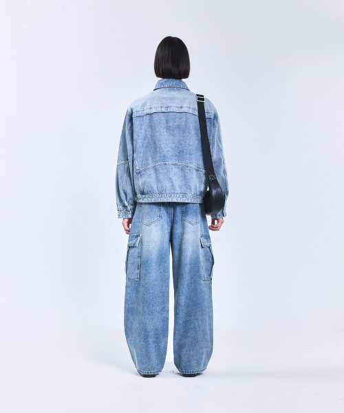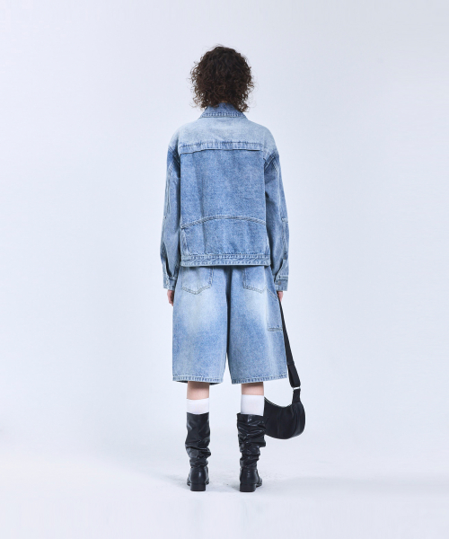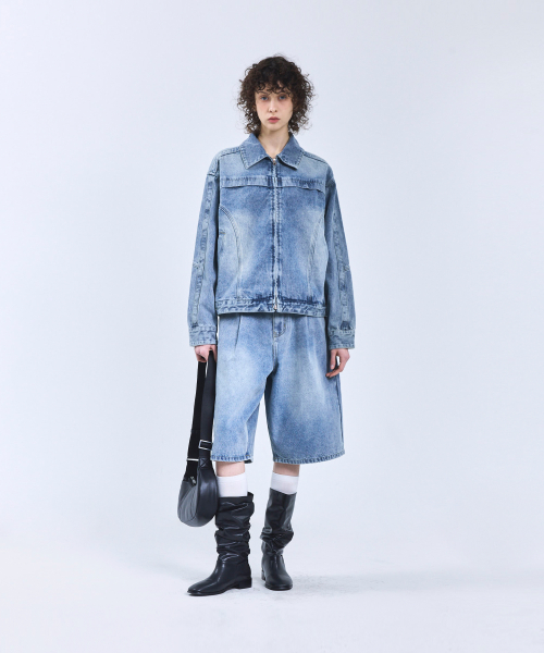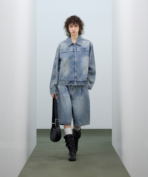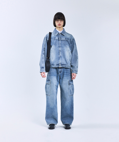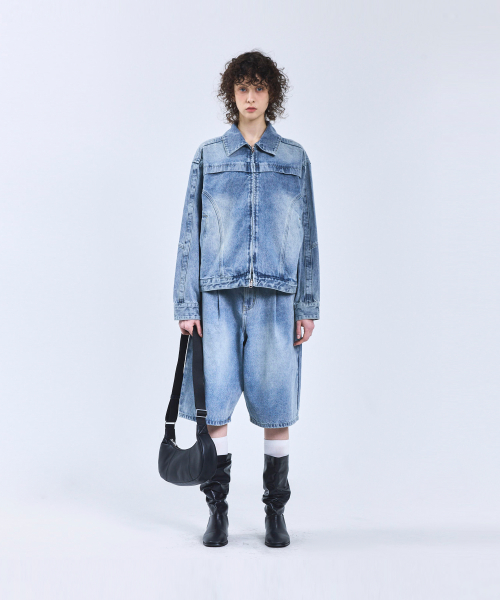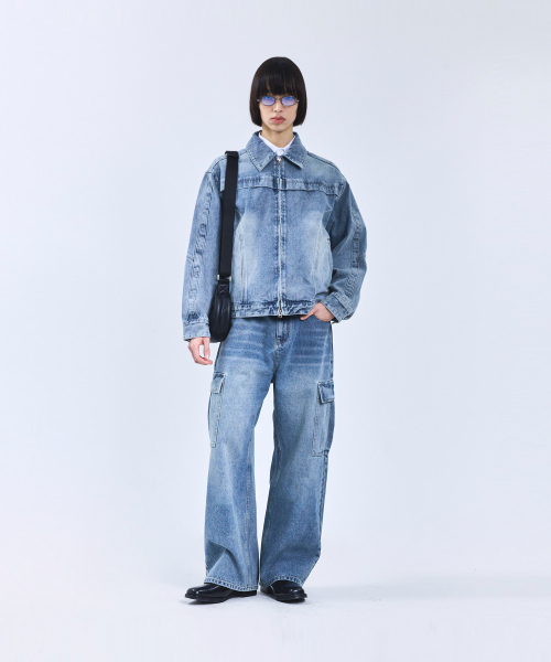 87-STAN117 [베이직] 빈티지 워시드 레이서 데님 자켓 빈티지 블루