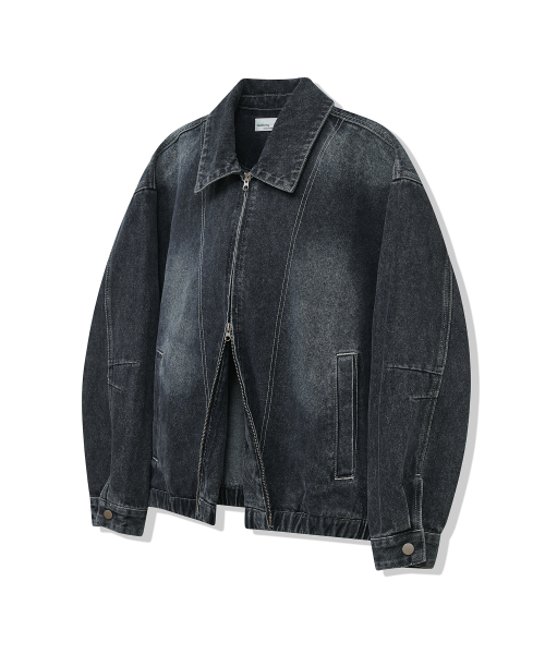 87-STAN117 [베이직] 빈티지 워시드 레이서 데님 자켓 빈티지 블랙