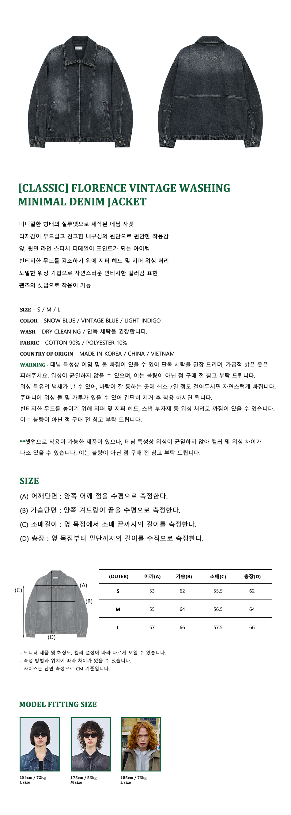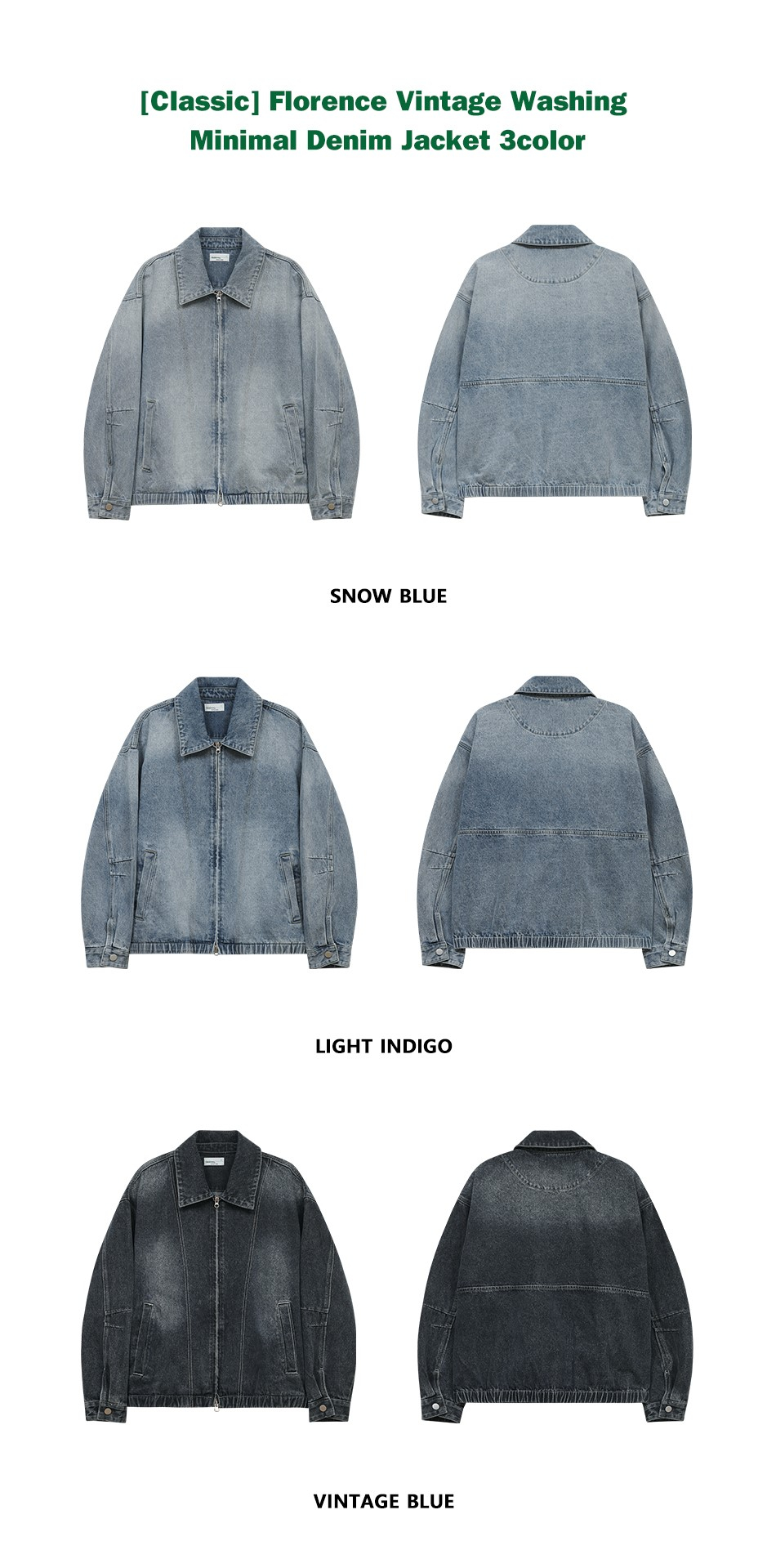 87-STAN118 [클래식] 피렌체 빈티지 워싱 미니멀 데님 자켓 빈티지 블루