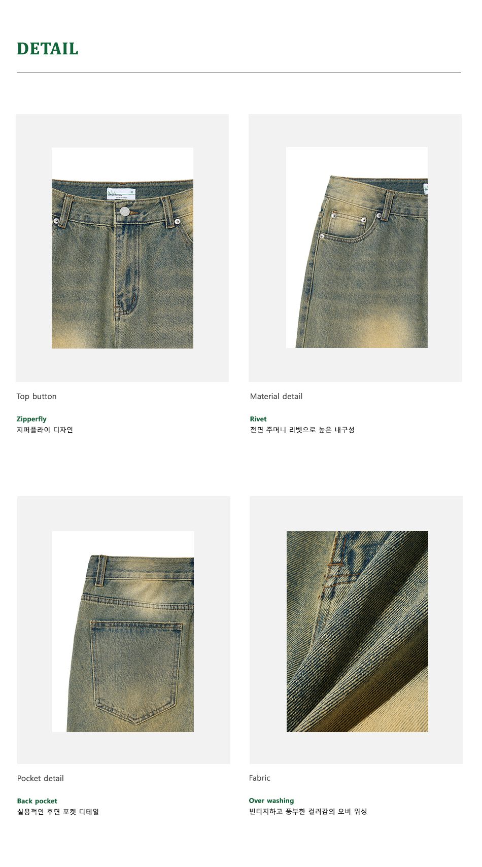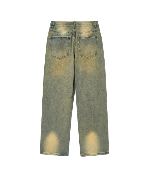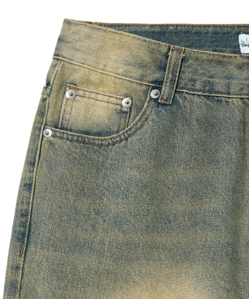 87-STAN168 미스티 캣샌드 워싱 와이드 데님팬츠 빈티지옐로우