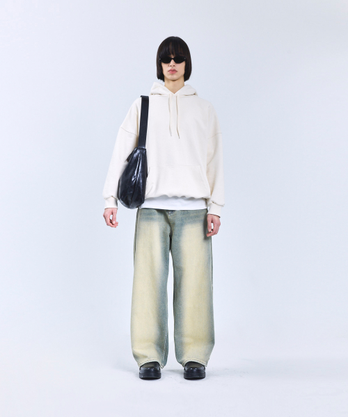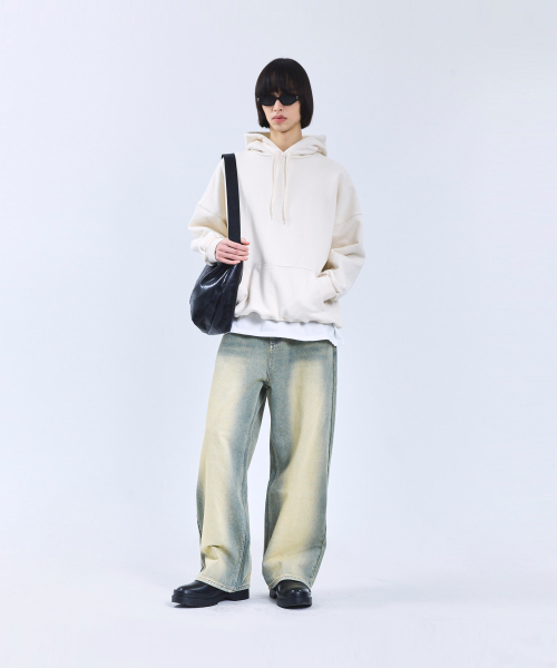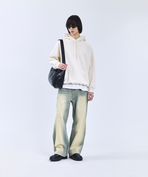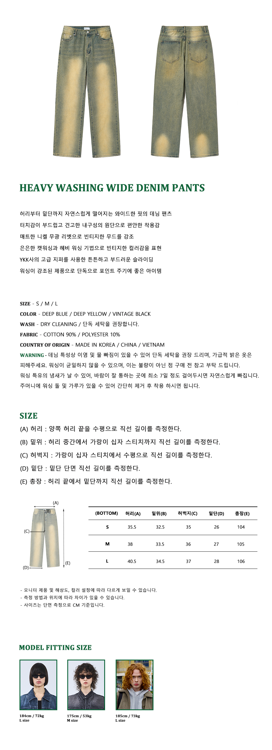 87-STAN182 헤비 워싱 와이드 데님팬츠 딥옐로우