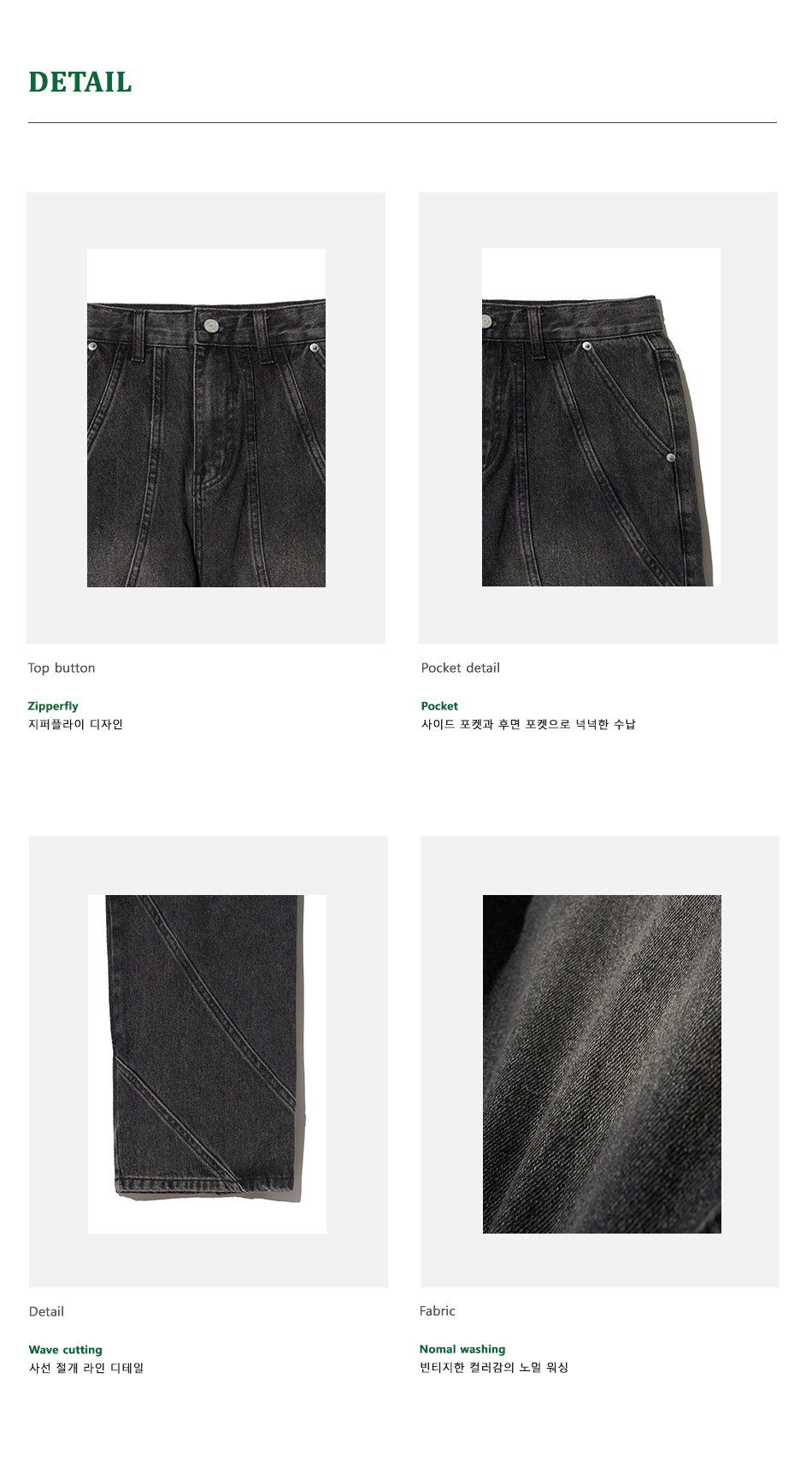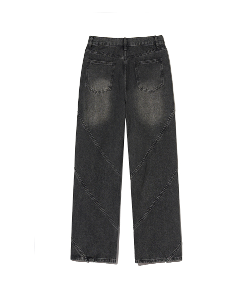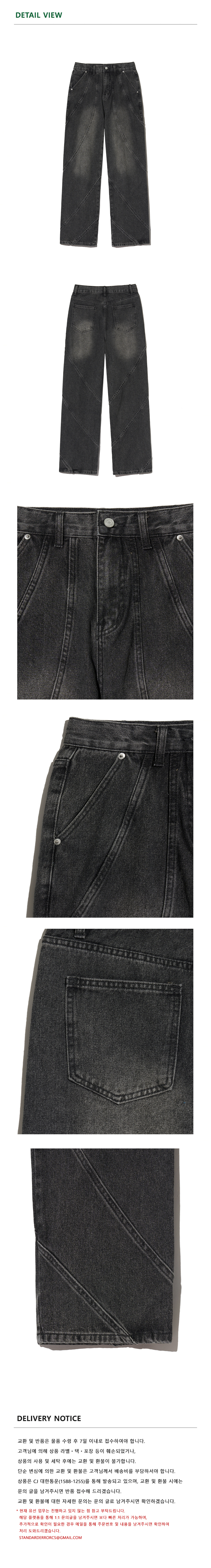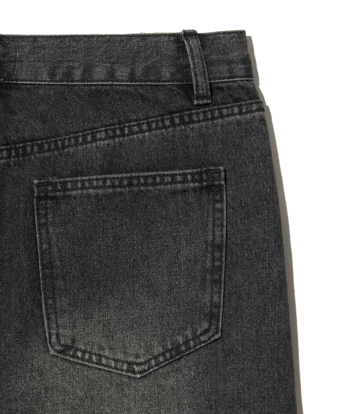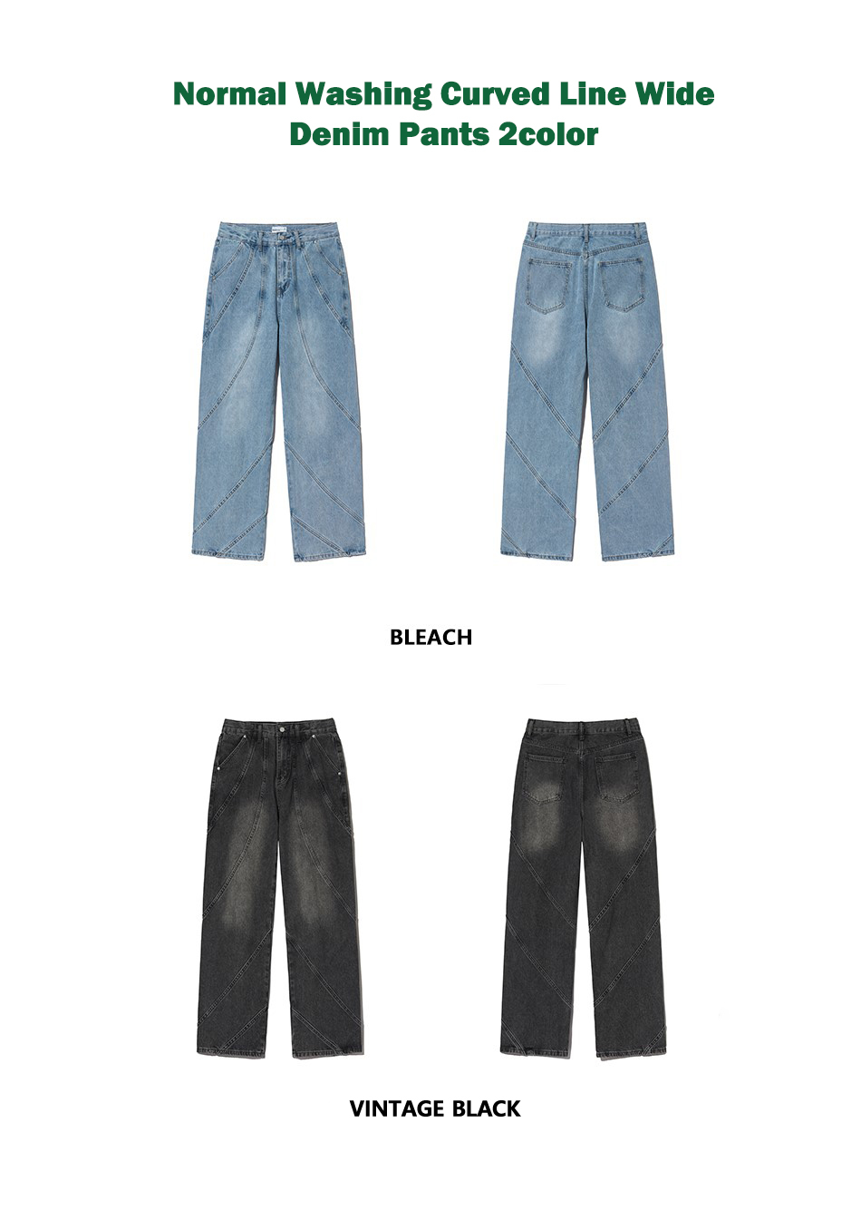 87-STAN186 노멀 워싱 커브드 라인 와이드 데님팬츠 빈티지 블랙