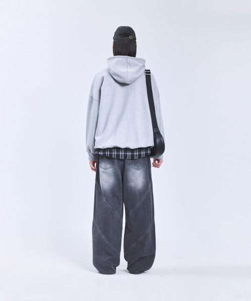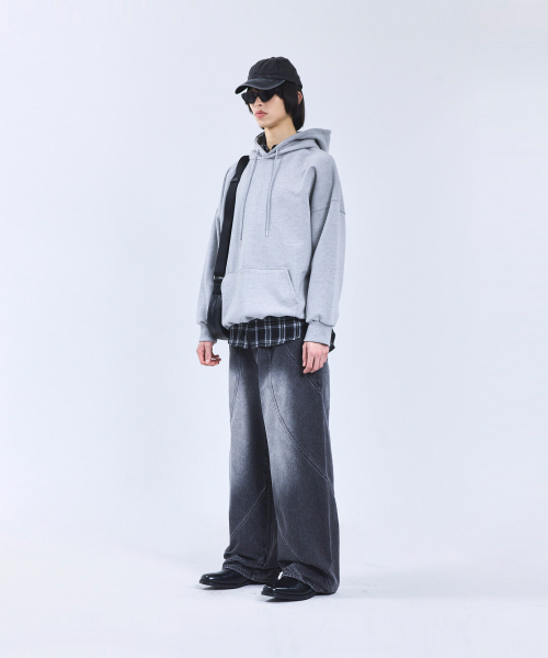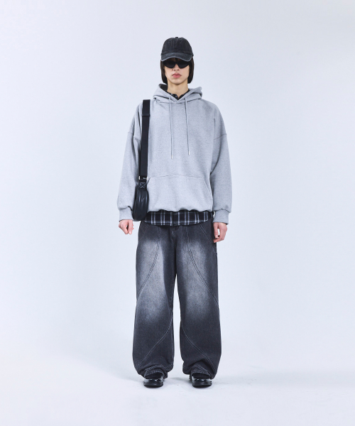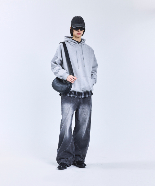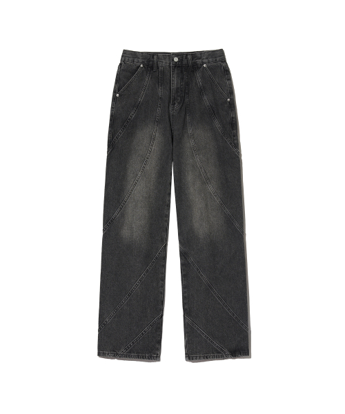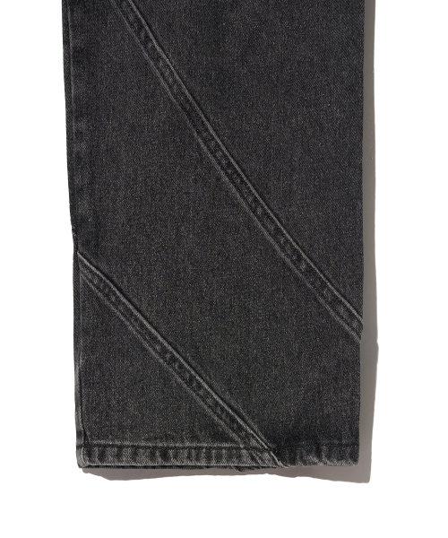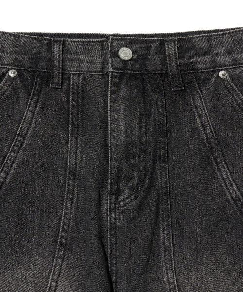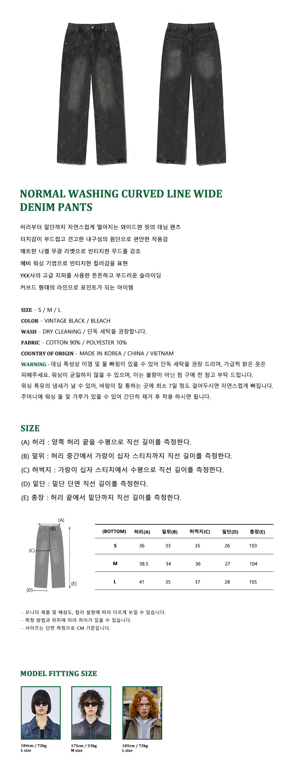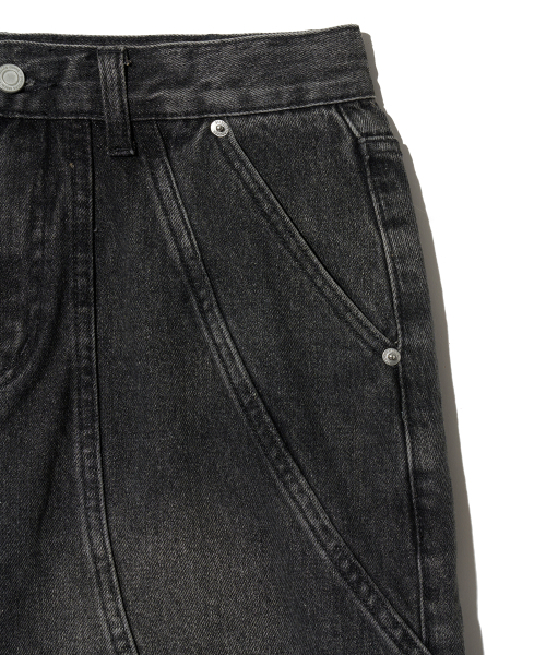 87-STAN186 노멀 워싱 커브드 라인 와이드 데님팬츠 빈티지 블랙