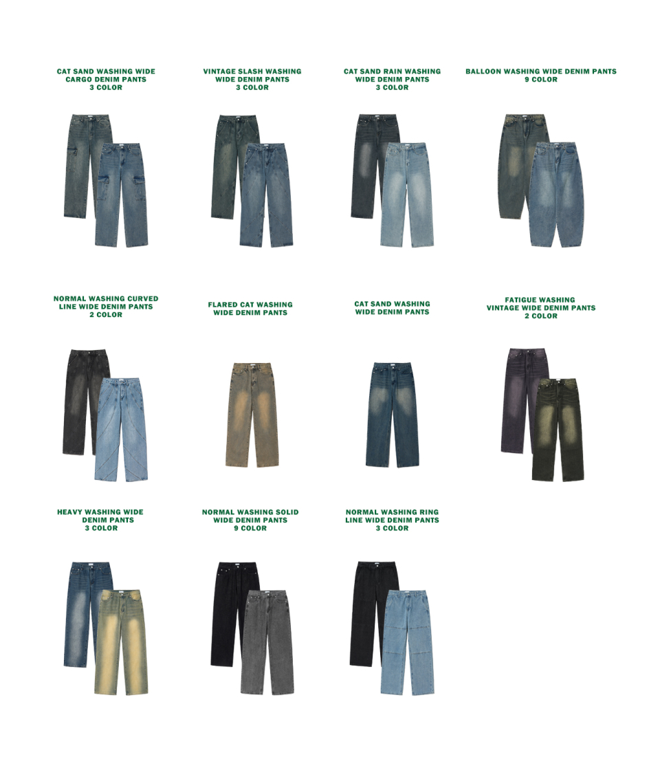 87-STAN047 벌룬핏 워싱 와이드 데님팬츠 빈티지워시드블루