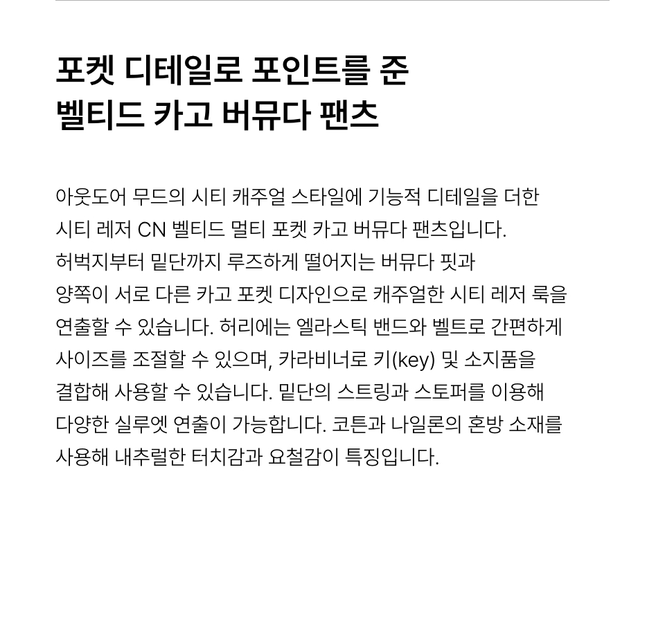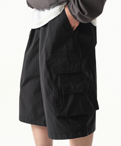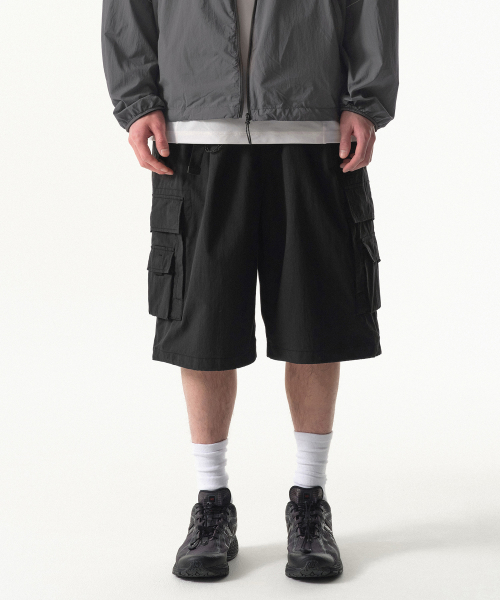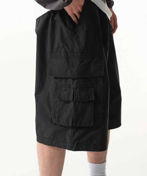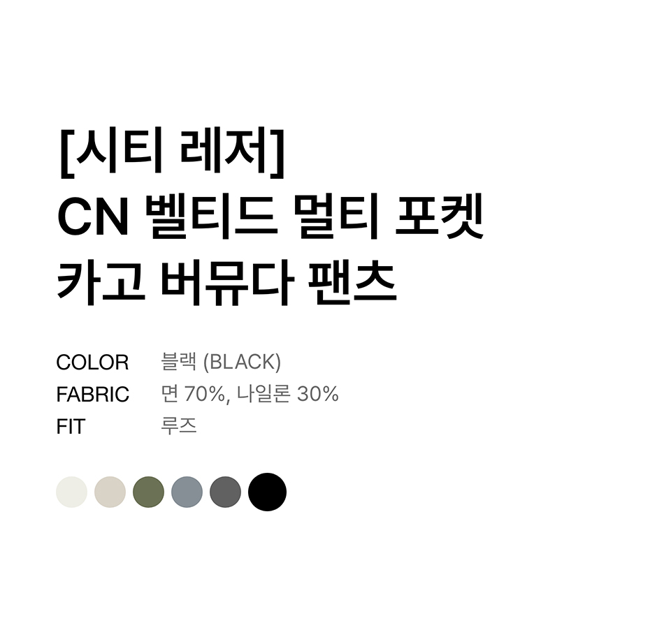 [시티 레저] CN 벨티드 멀티 포켓 카고 버뮤다 팬츠 [블랙]
