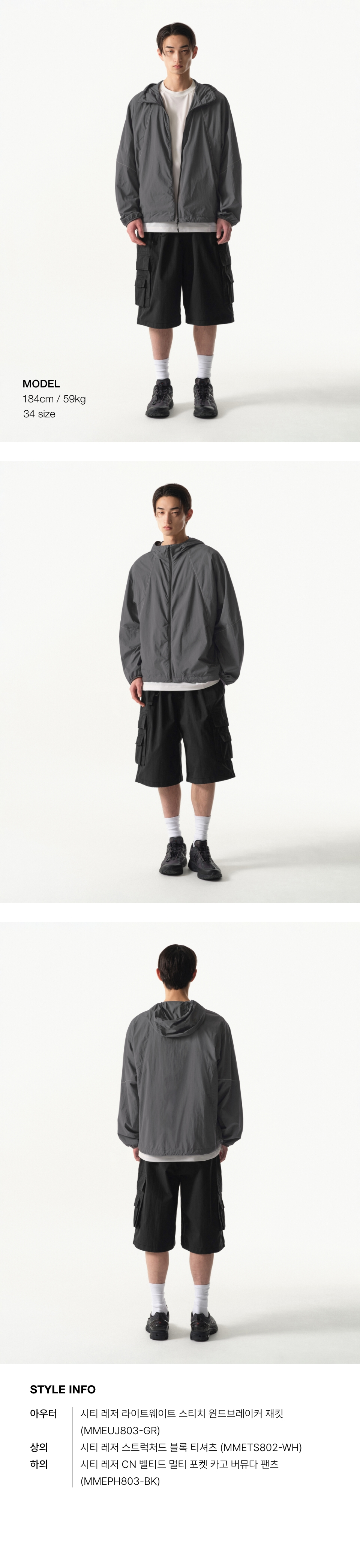 [시티 레저] CN 벨티드 멀티 포켓 카고 버뮤다 팬츠 [블루 그레이]