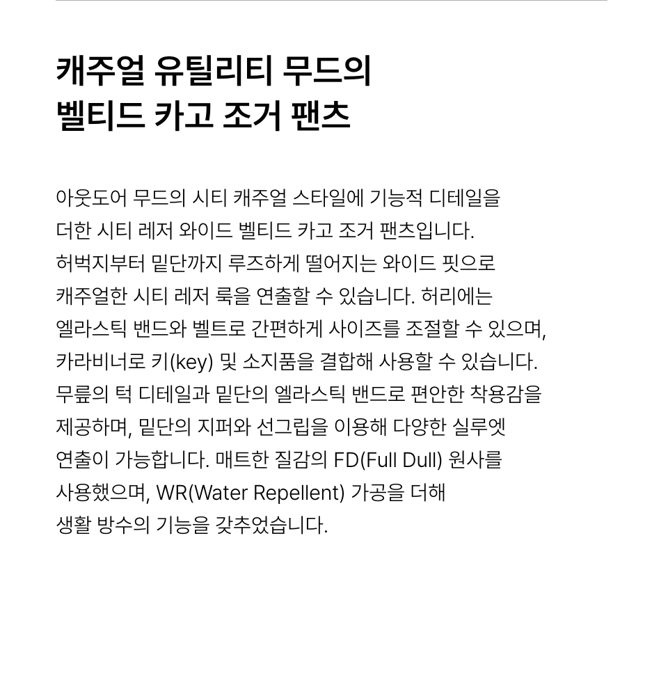 [시티 레저] 와이드 벨티드 카고 조거 팬츠 [블랙]