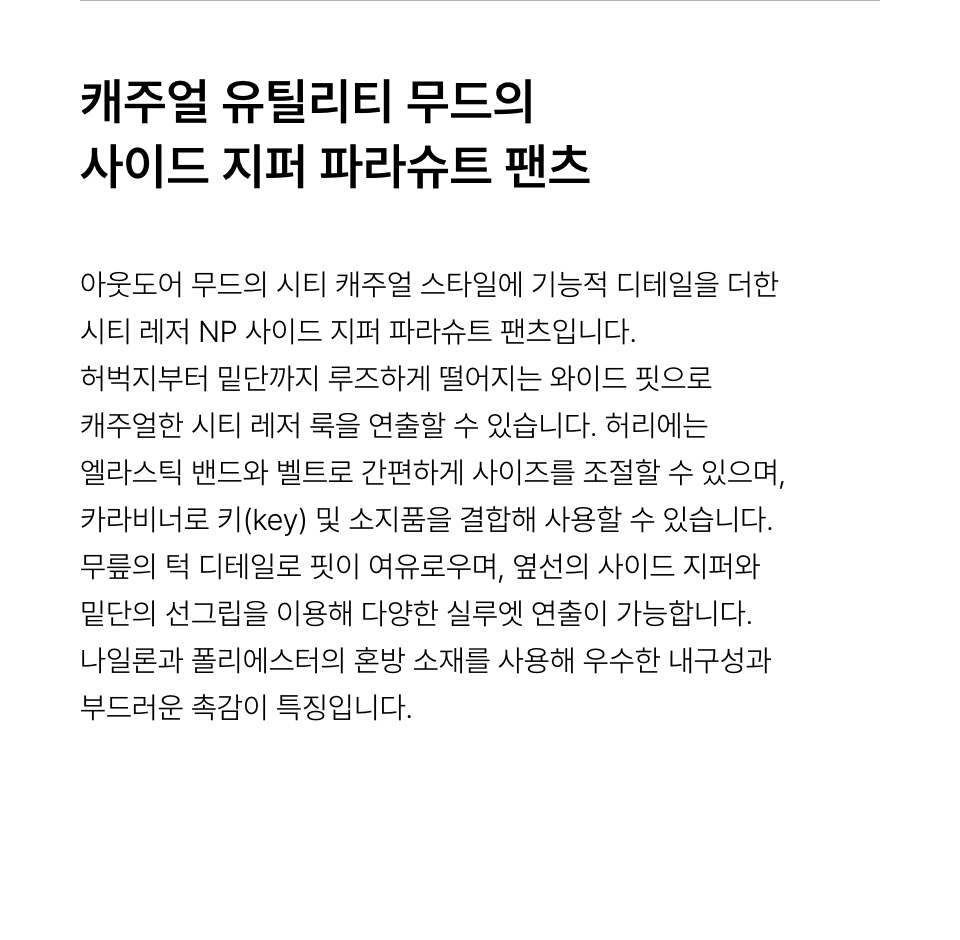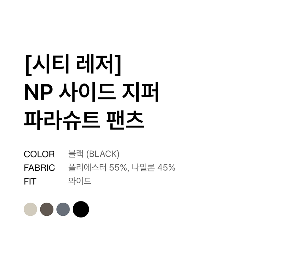 [시티 레저] NP 사이드 지퍼 파라슈트 팬츠 [블랙]
