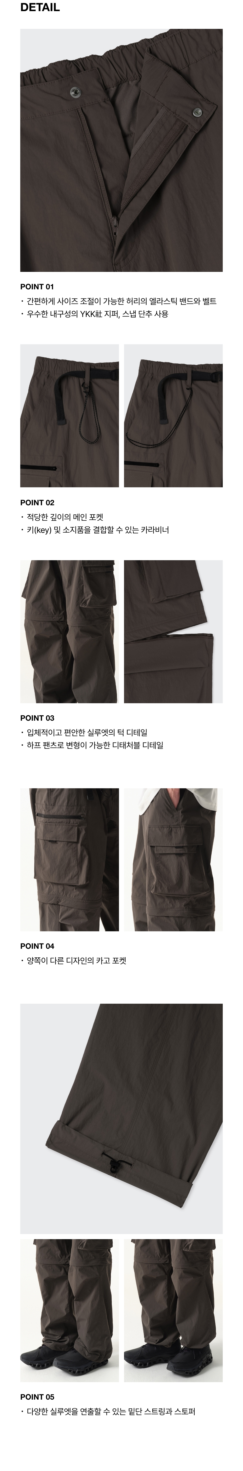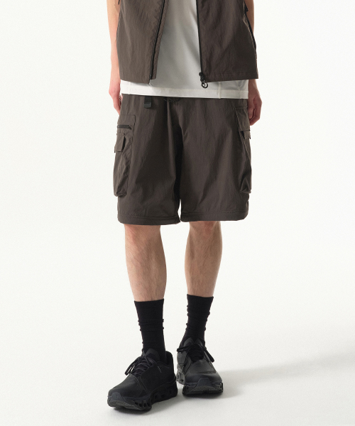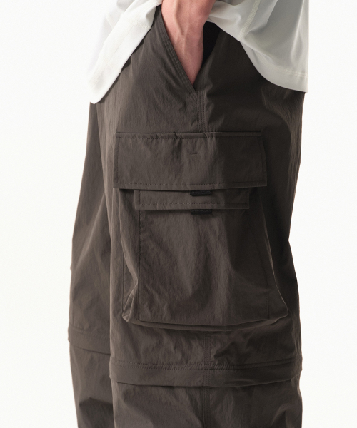 [시티 레저] 와이드 벨티드 디태처블 카고 팬츠 [머드 그레이]
