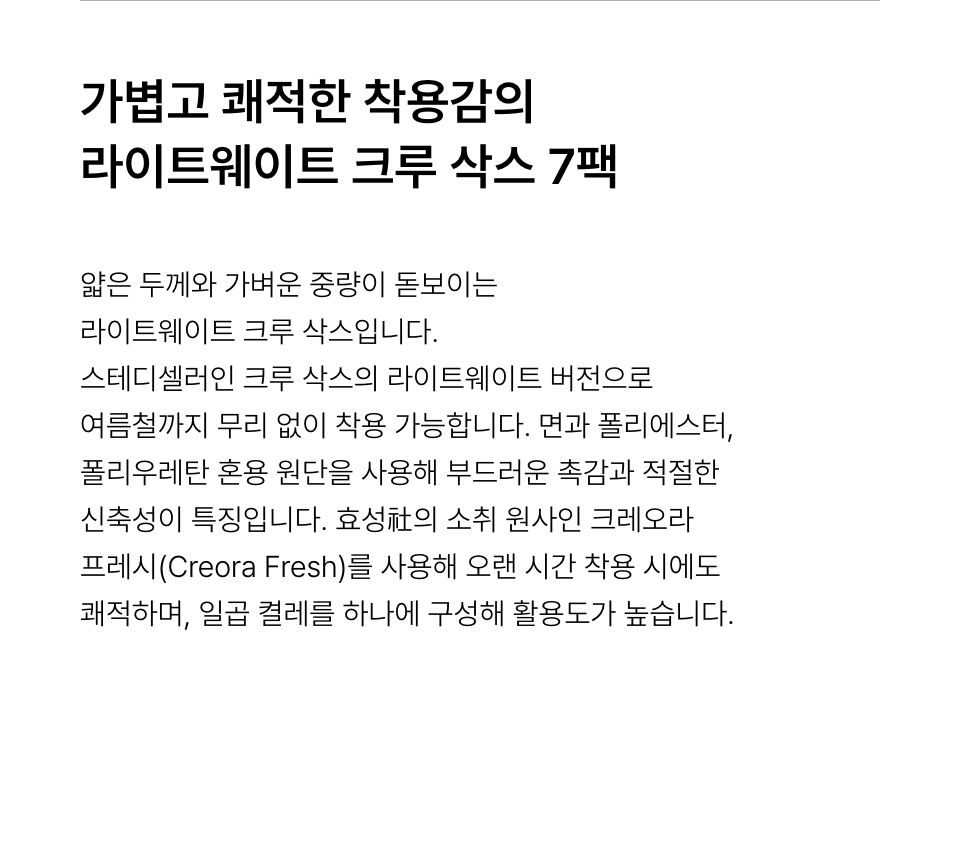 라이트웨이트 크루 삭스 7팩 [화이트]