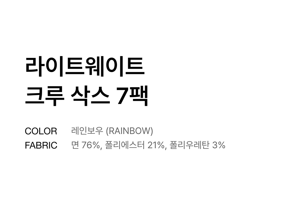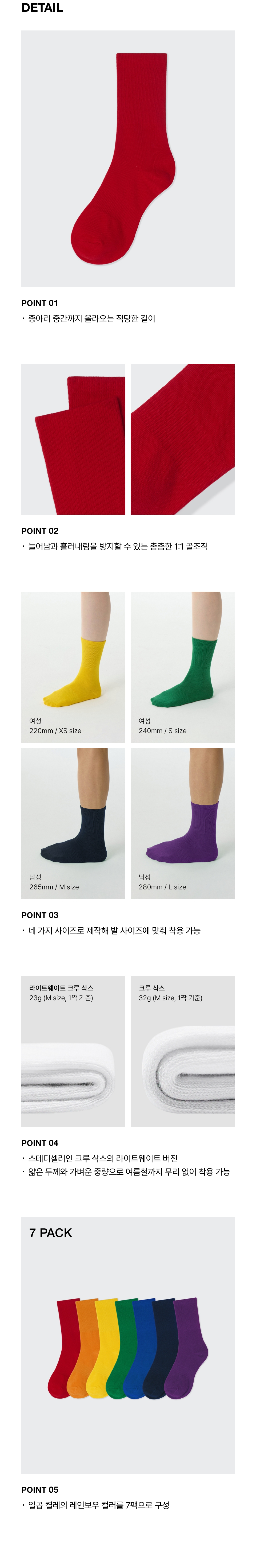 라이트웨이트 크루 삭스 7팩 [레인보우]