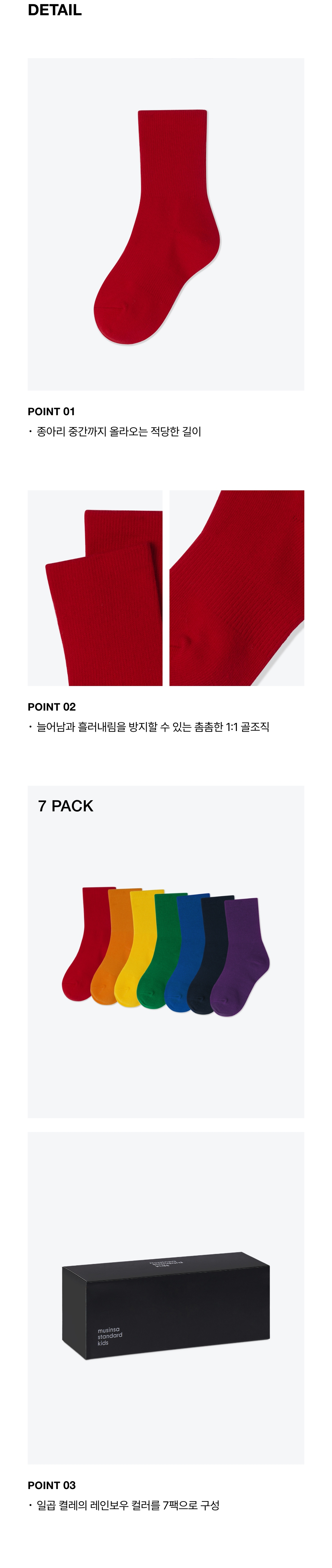라이트웨이트 크루 삭스 7팩 [레인보우]